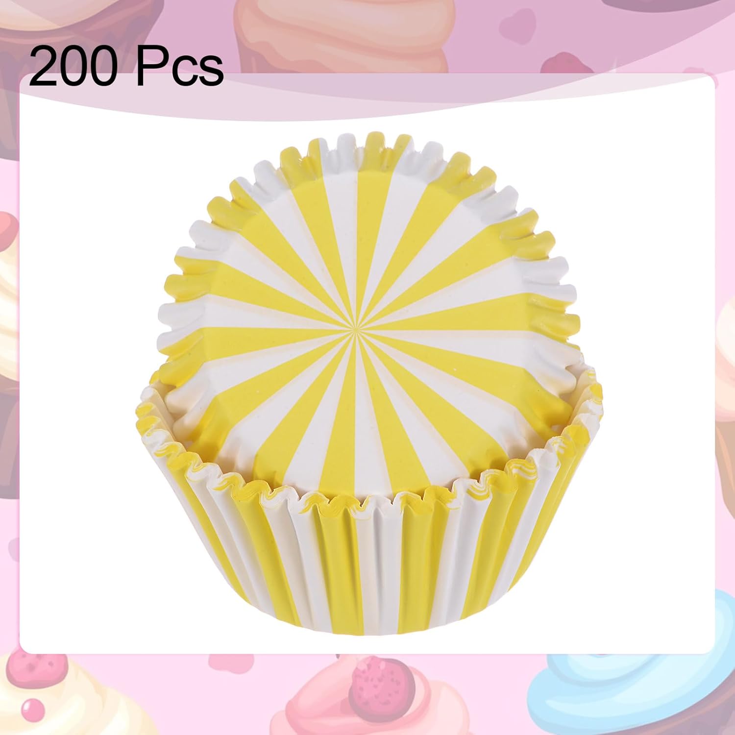 HARFINGTON 200 Count Cupcake Liners Yellow Stripe Cupcake Cups Standard Size Muffins Liners Papers Baking Cups Wrappers Greaseproof for Party Wedding Birthday