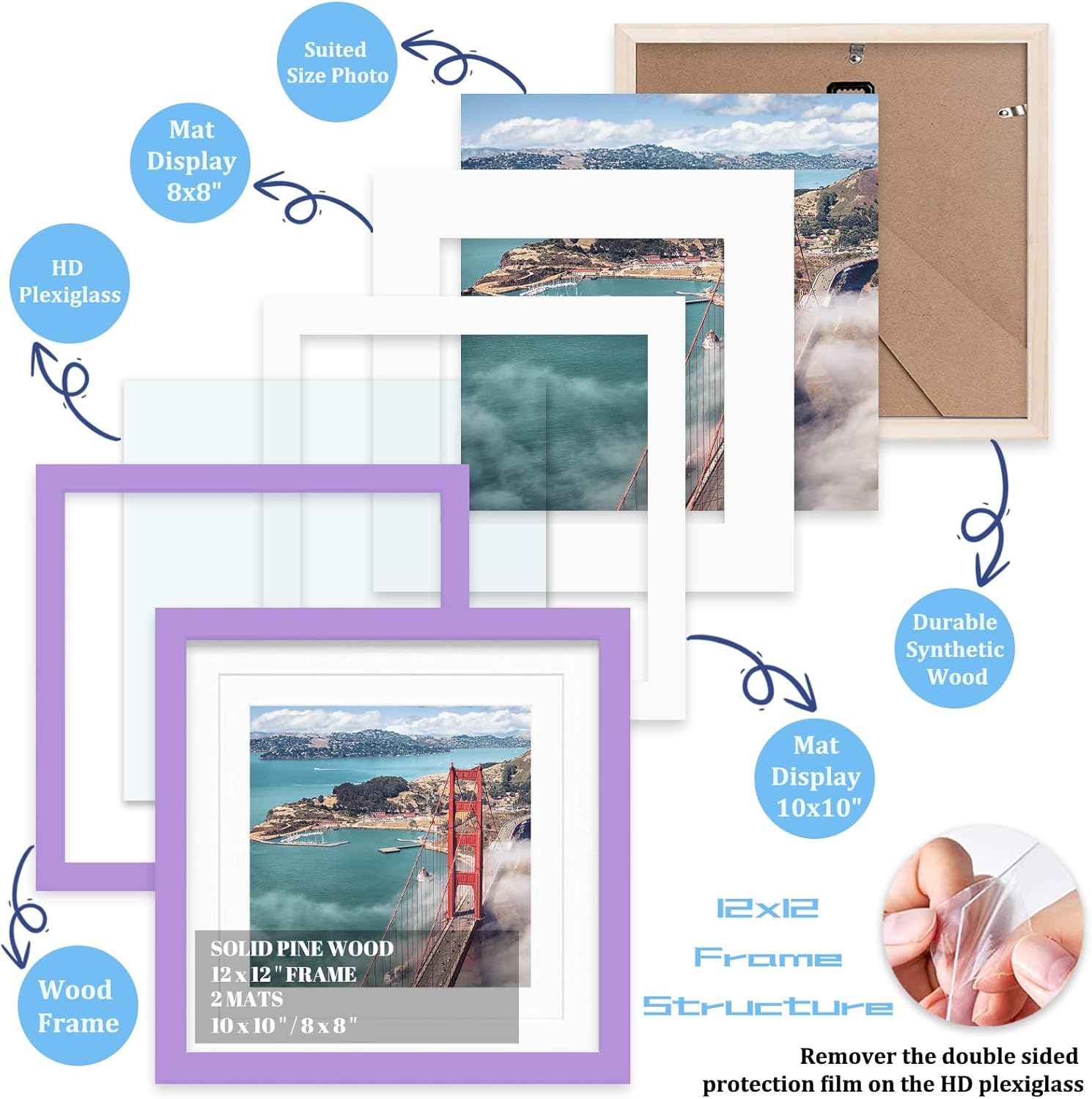 - 『Important Noted』Please Make Sure Tear Off Both Side Film On The Font Of Transparent Protective Sheet(Cover) ; Pin-Hook Included. Can Hang the Frames on the Wall of Living Room&Baby Room&Stair Case.Note:Mat opening designed smaller than photo in order to hold it strongly. It’s not a defect.