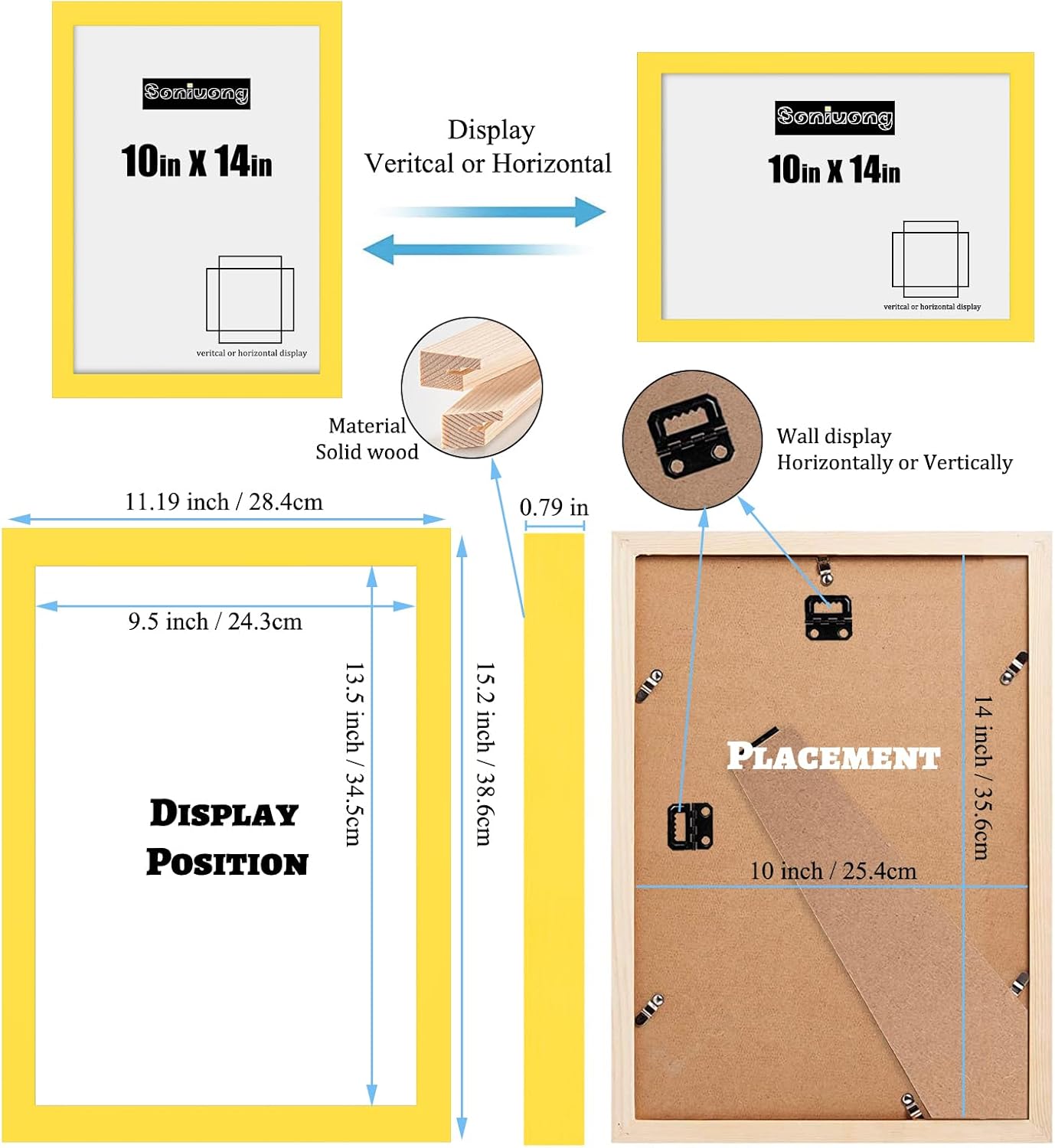 10x14 inch Wood Picture Frames for Wall Hanging,Diamond Painting Frames Rectangle Baby Scan Picture Frame for Family Walls Decoration,Anniversary,Wedding,Christmas,Halloween,Shower,Certificate (Yellow)