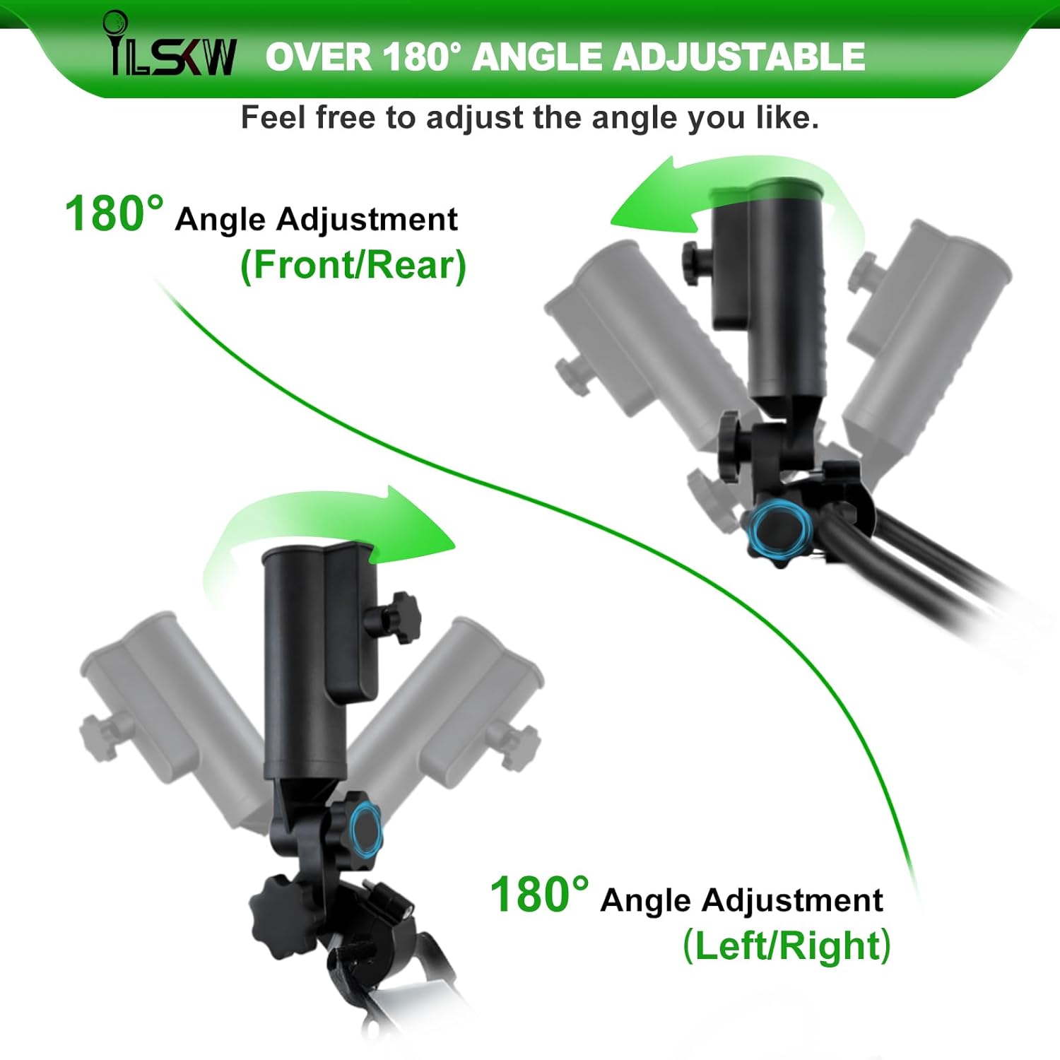 iLSKW Heavy Duty Golf Push Cart Umbrella Holder Upgraded Strong Windproof Design Aluminium Alloy Base with 180 Degrees Adjustment Stroller Umbrella Holder for Mobility Scooter, Wheelchair, Wagon Cart