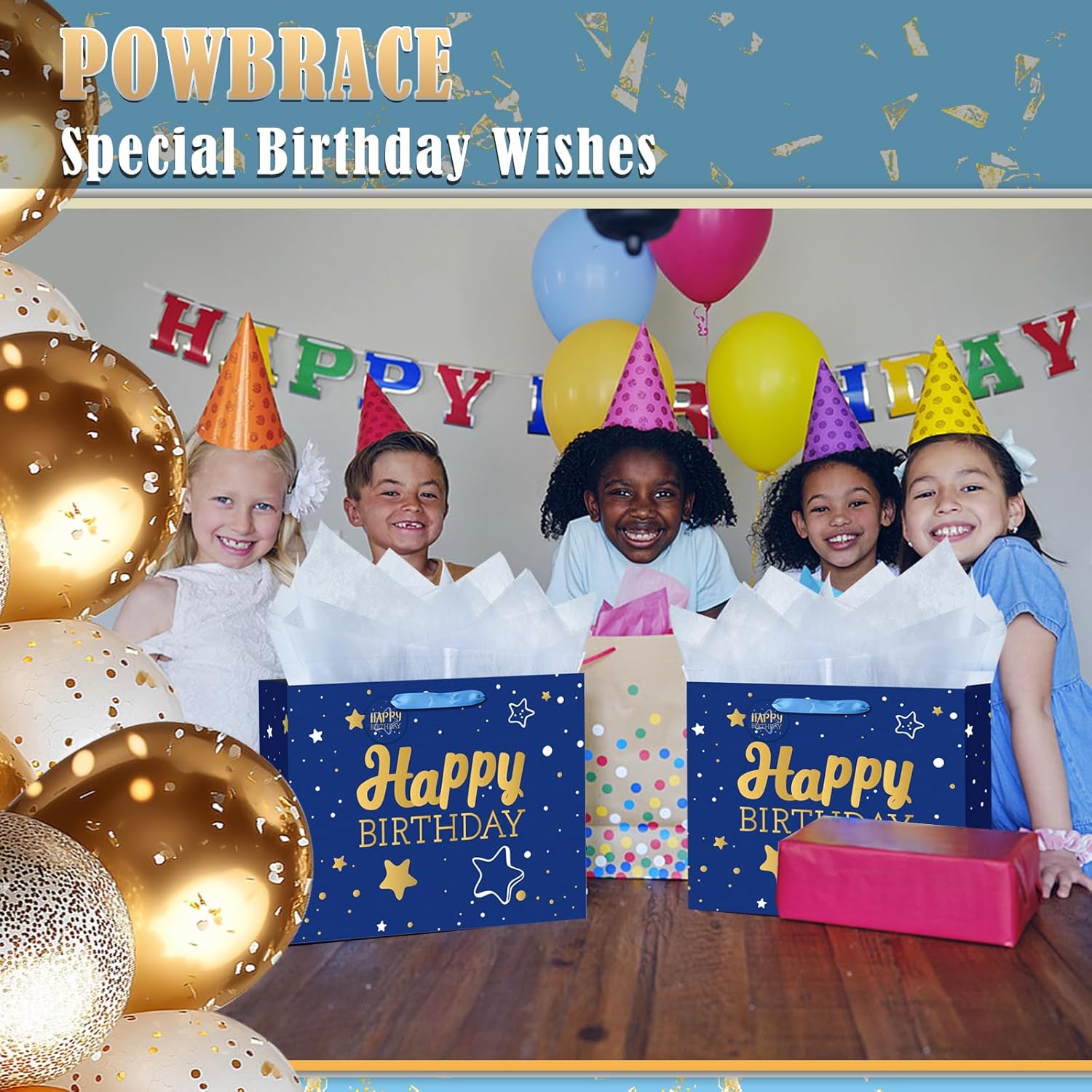 13" Black + Blue Happy Birthday Gift Bag with Tissue Paper and Greeting Card for Party,Happy Birthday Gift Bag for Men Women, Gift Bags Medium size(2 PCS Black & Blue)