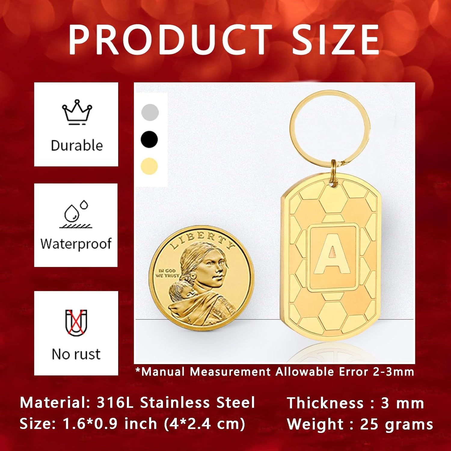 Initial Keychain Gifts for Men,Soccer Dog Tag Mens Keychains for Men Him Dad