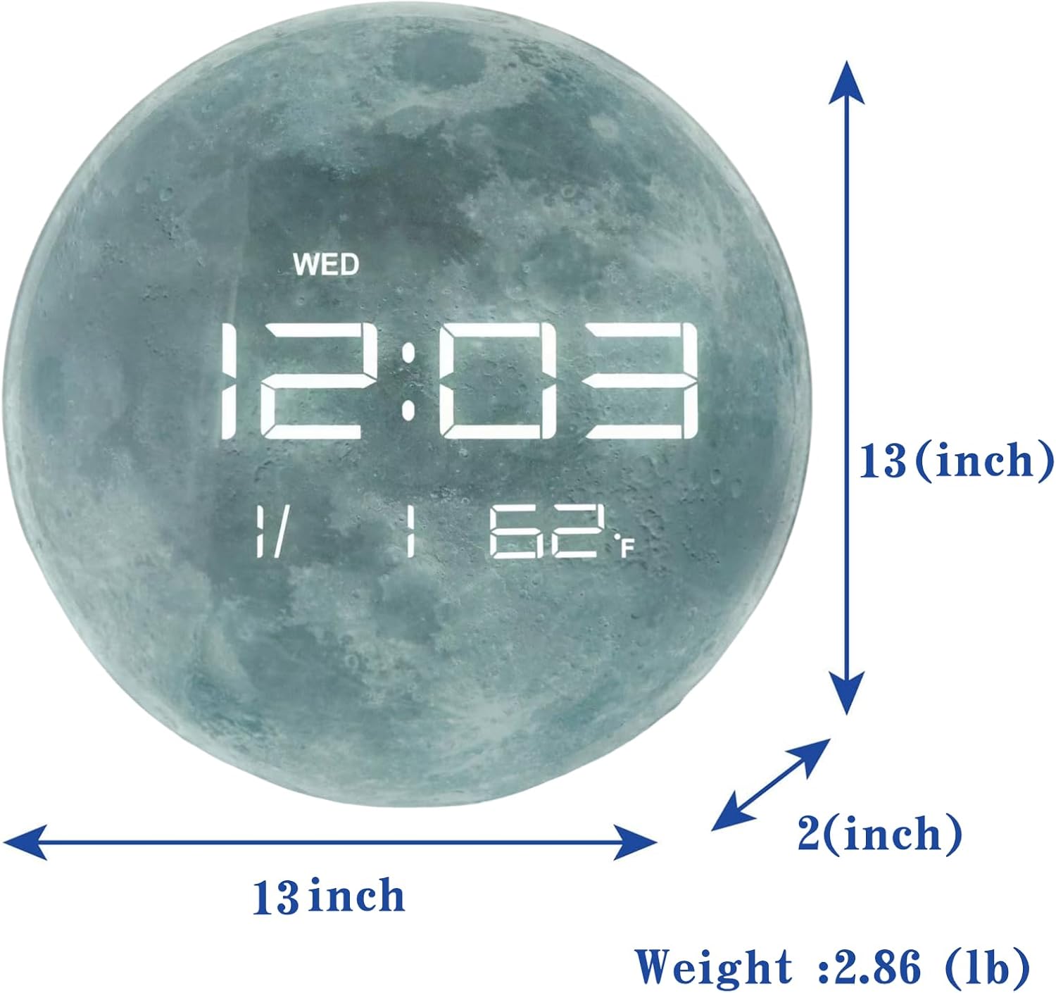 13" Digital Wall Clock with LED Display, Calendar & Temperature, Automatic Dimming, 12/24hr Format, Wall & Desk Use - HUI-7860