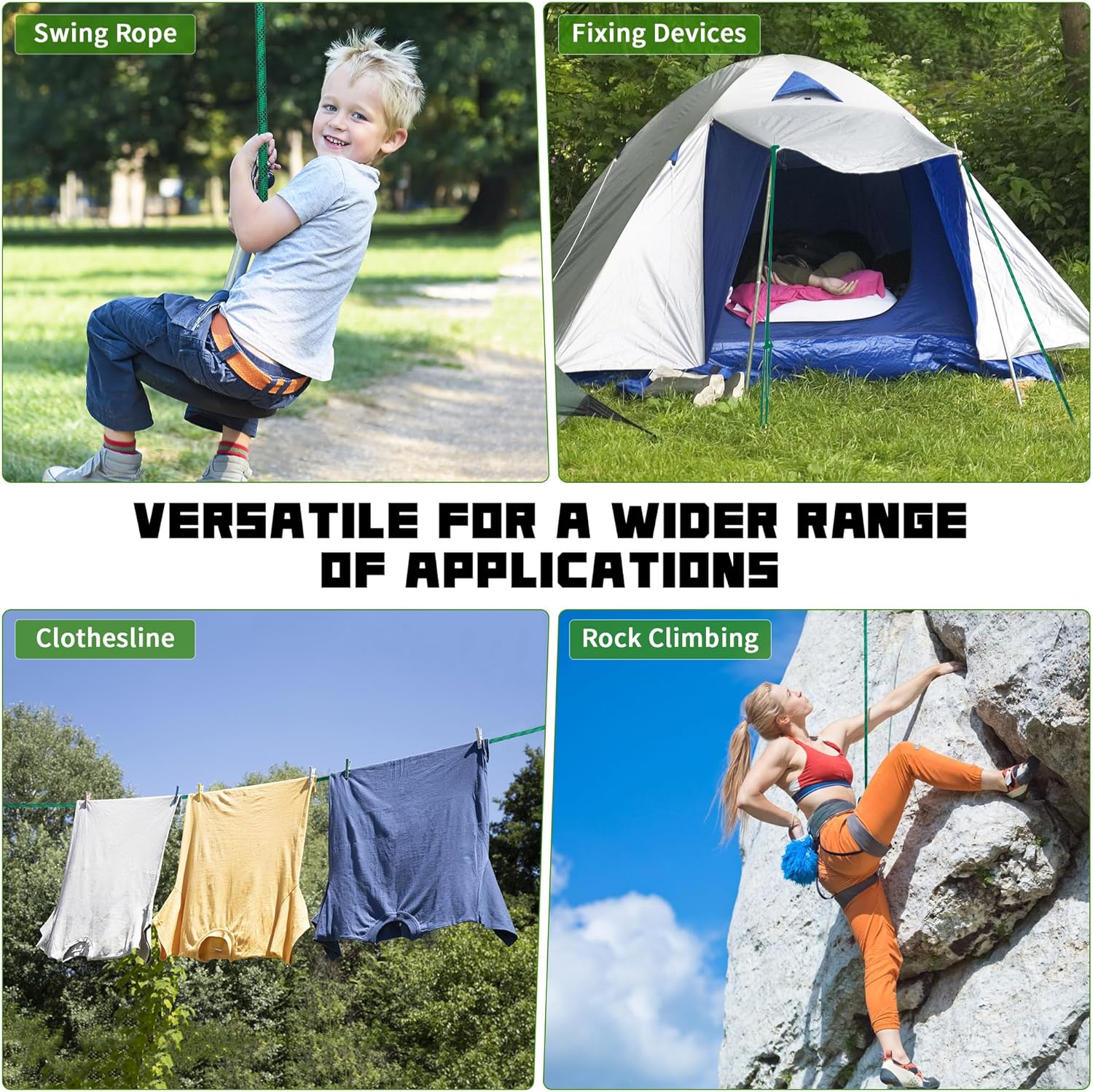- Versatile: Strong braided rope which is lightweight and multi-purpose, will be convenient to carry and use. It will be suitable for lifting, tree artist rigging, climbing, ship anchor, car traction, sailing, swing, etc.
