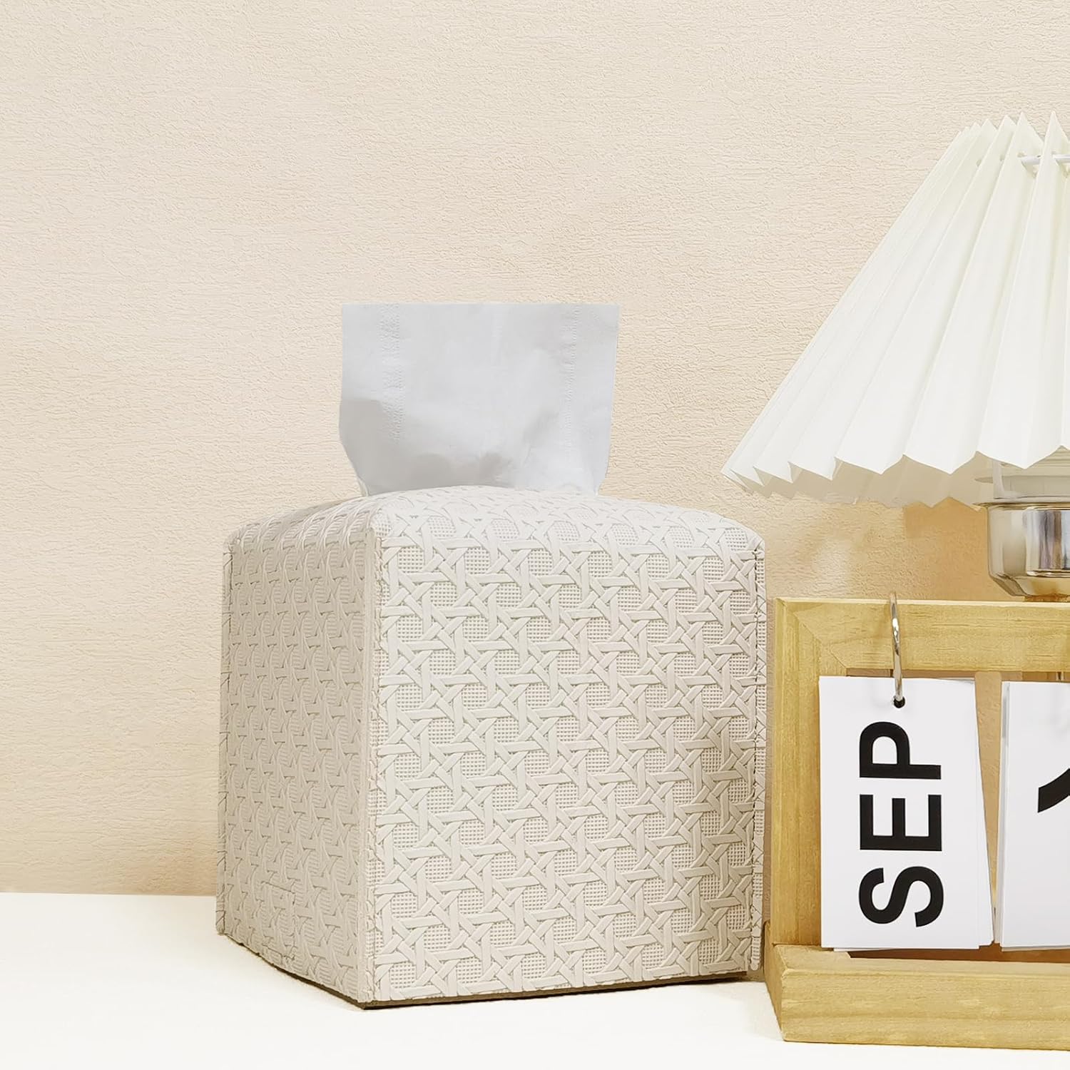- Elegant Design:Elevate your decor with this stylish square tissue box cover; crafted from premium PU leather with chic textures like Litchi Grain and Woven Waffle; a perfect blend of sophistication and practicality