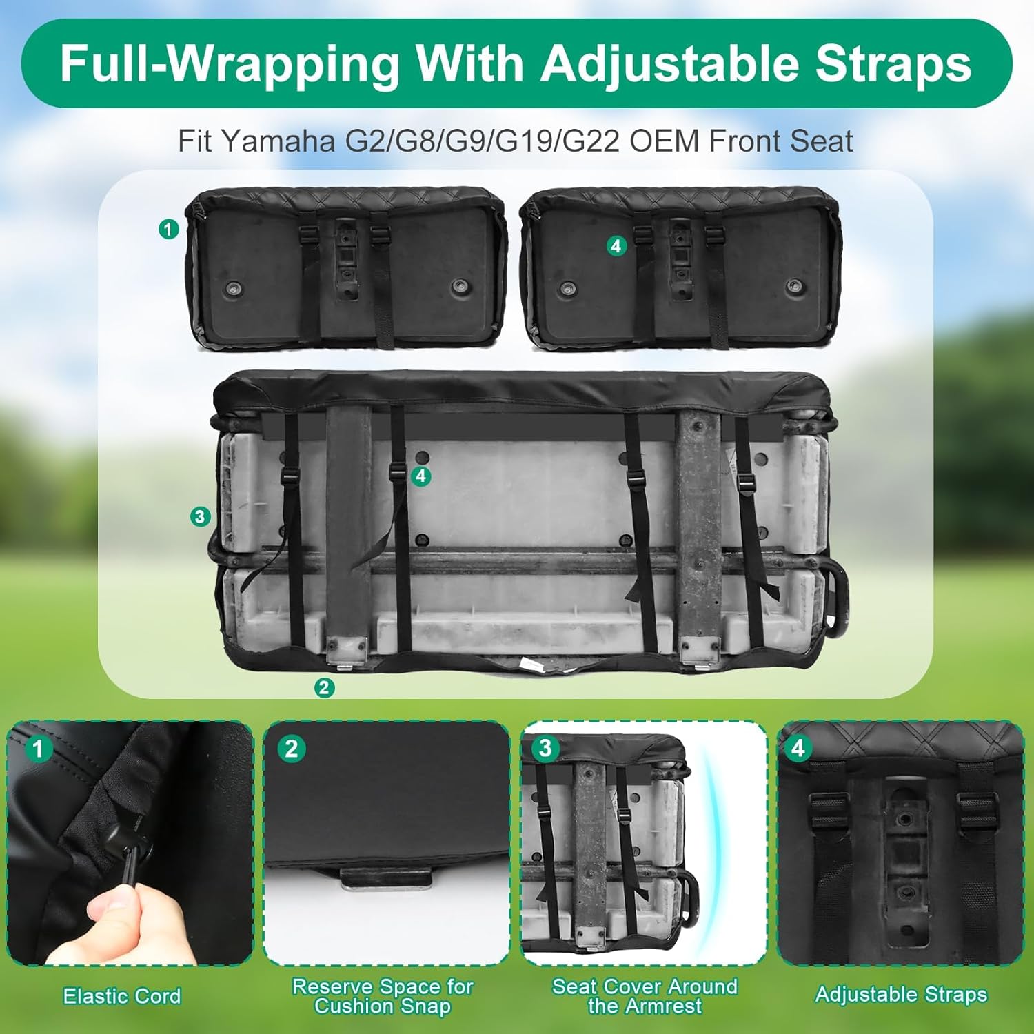 - Fit Yamaha G22 Golf Cart: Golf cart seat covers fit Yamaha G22 G2 G8 G9 G16 G19 model, front OEM ordinary seats only, not for modified or custom seats. This club car seat covers contains 1 front backrest cover set and 1 front bench seat cover