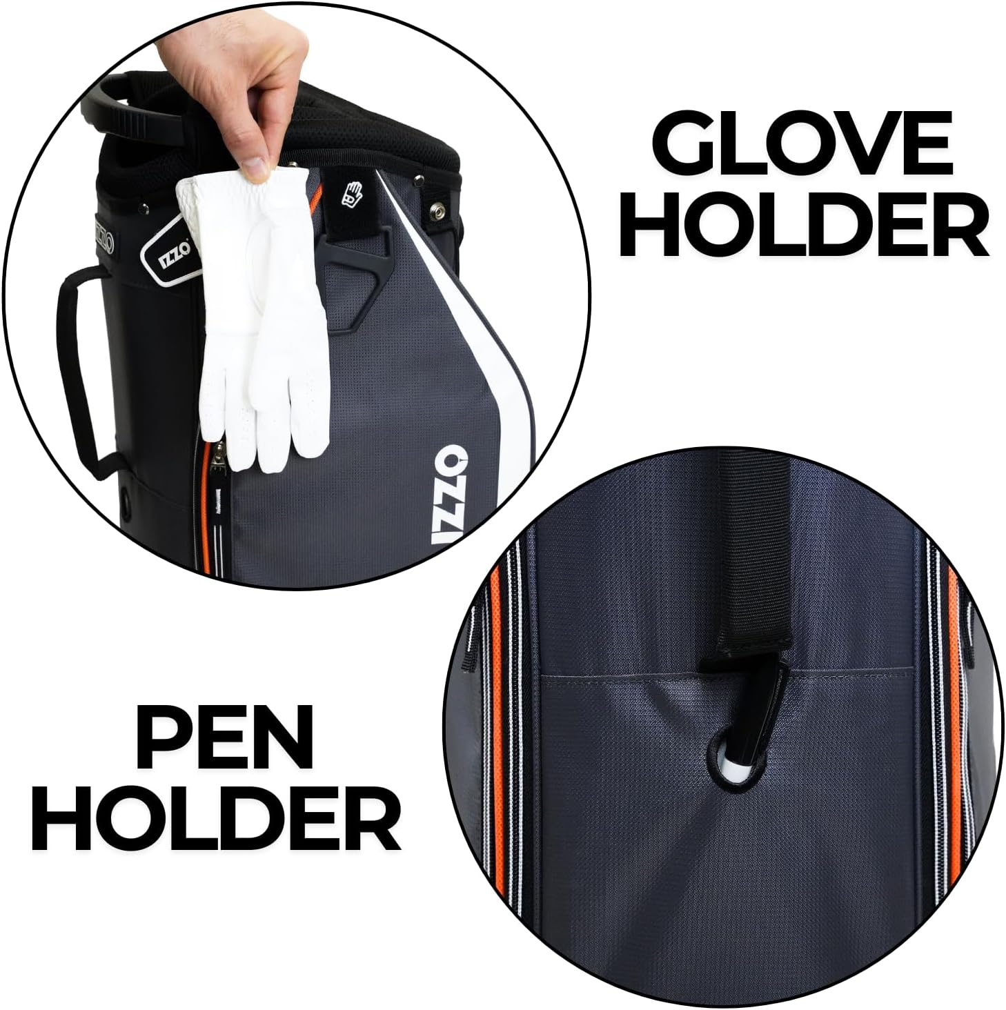 - Premium Features: Our cart golf bag includes 6 total pockets, including a valuables pocket, single carry strap, umbrella holder, glove holder, towel clip, and rain hood