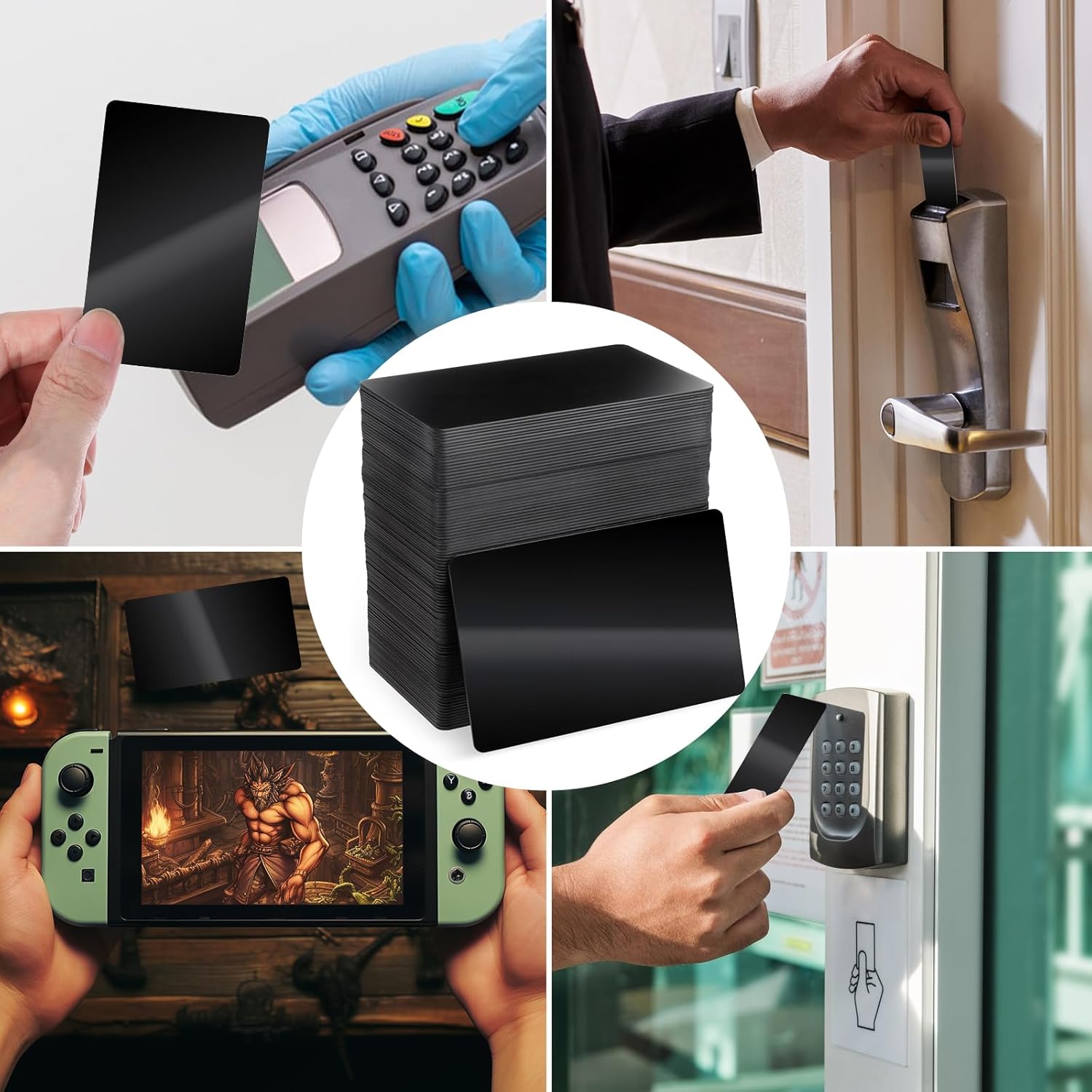 - 【Size and Quantity】 A total of 100 black blank NFC cards are included, the size is 8.55×5.4cm/3.36×2.12inch, the thickness is 0.8mm, not easy to break and sufficient quantity, the nfc tags is equipped with NTAG215 chip, the memory capacity is 504 bytes, allowing you to store a lot of data on each card; advanced chip technology also makes the card compatible with TagMo