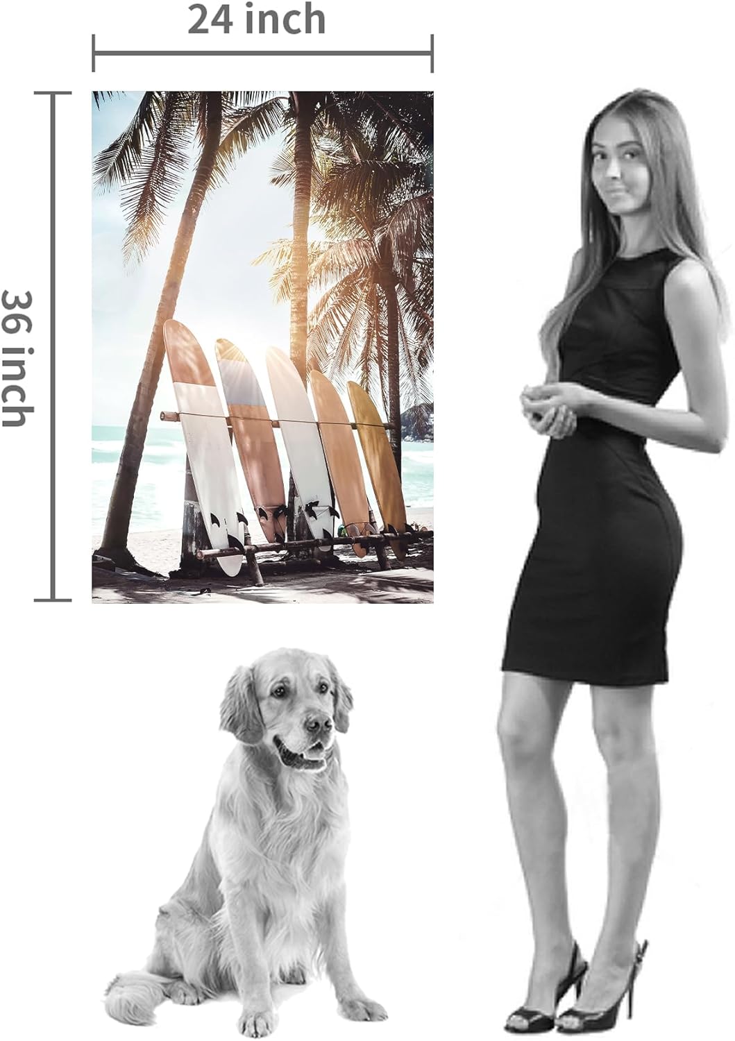 Hardy Gallery Palm Tree Wall Art Surfboard Pictures: Beach Scene Painting Coastal Wall Decor Seaside Artwork Surfing Ocean Print in Beach Canvas for Bedroom 36"x24"