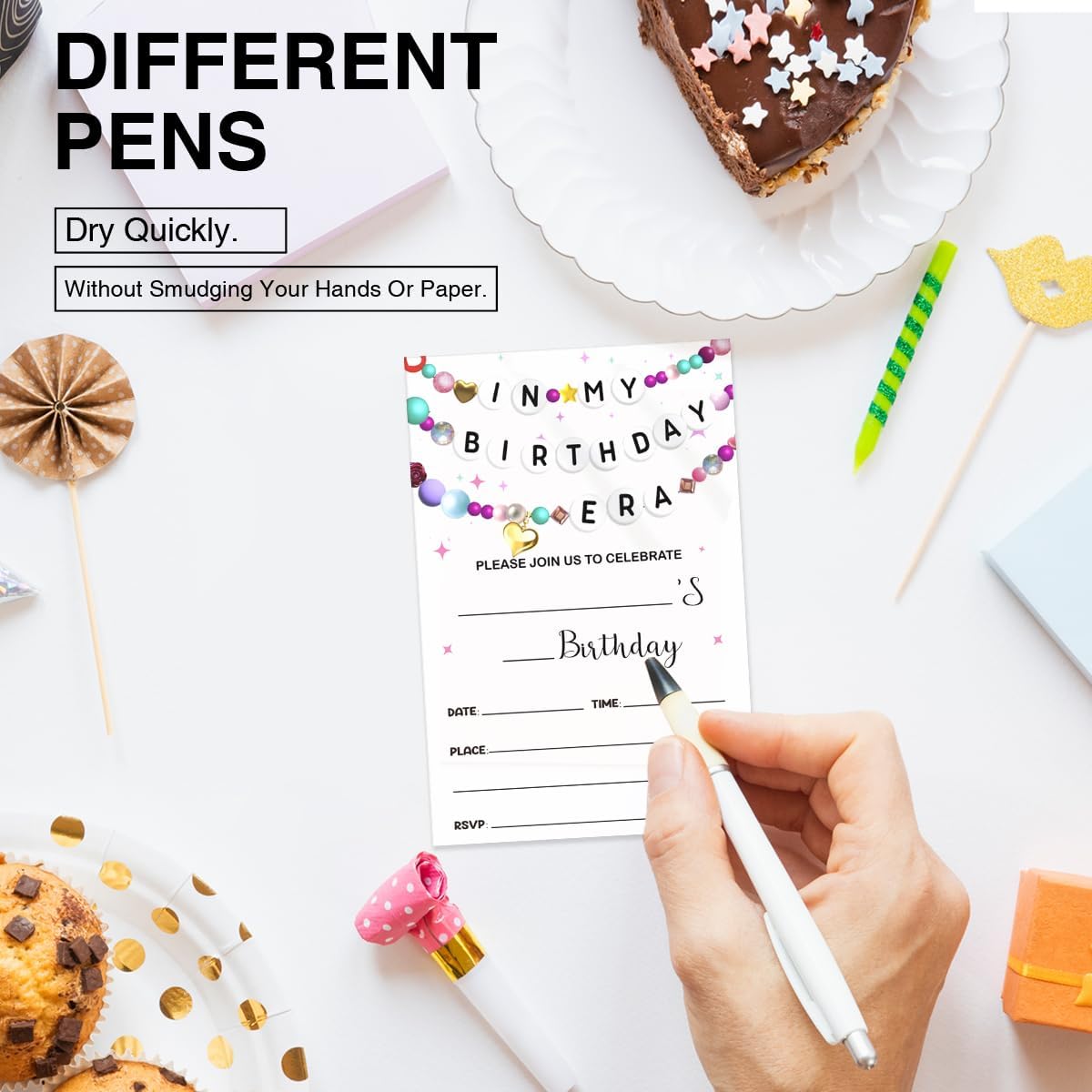 - Material: Every invitation card is crafted from high-quality paper that is easy to write on. Furthermore, each card has designated writing space for easily filling in details such as the party's date, time, and location