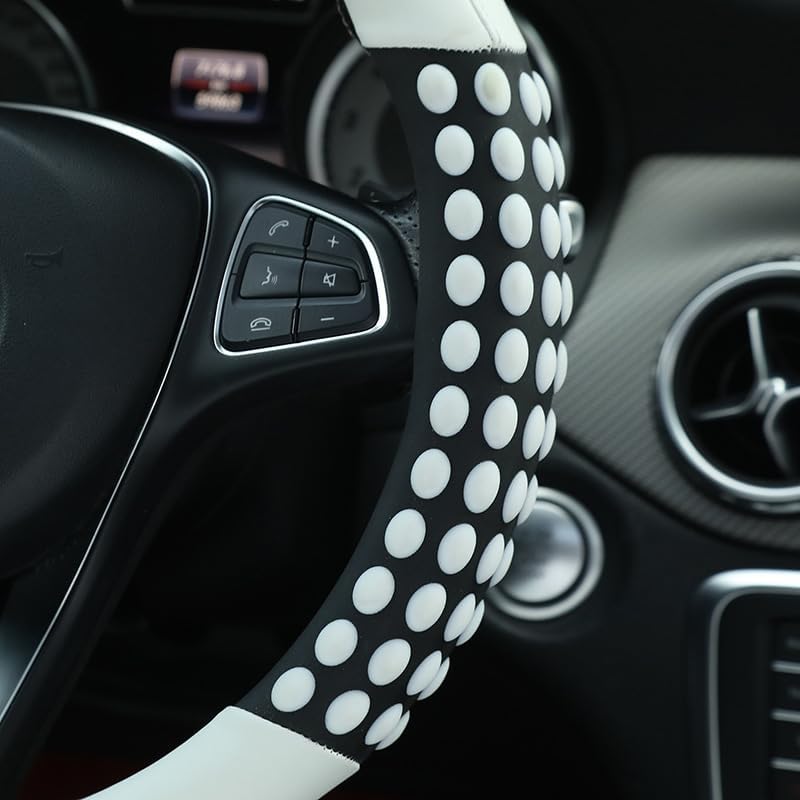 - [Comfortable and breathable] The convex point design enables the leather steering wheel cover accessories to massage the palm of the hand and relieve fatigue during driving, and this car steering wheel has a gap between the palm and the leather steering wheel cover, which can relieve sweating of the palm and make you more comfortable during driving