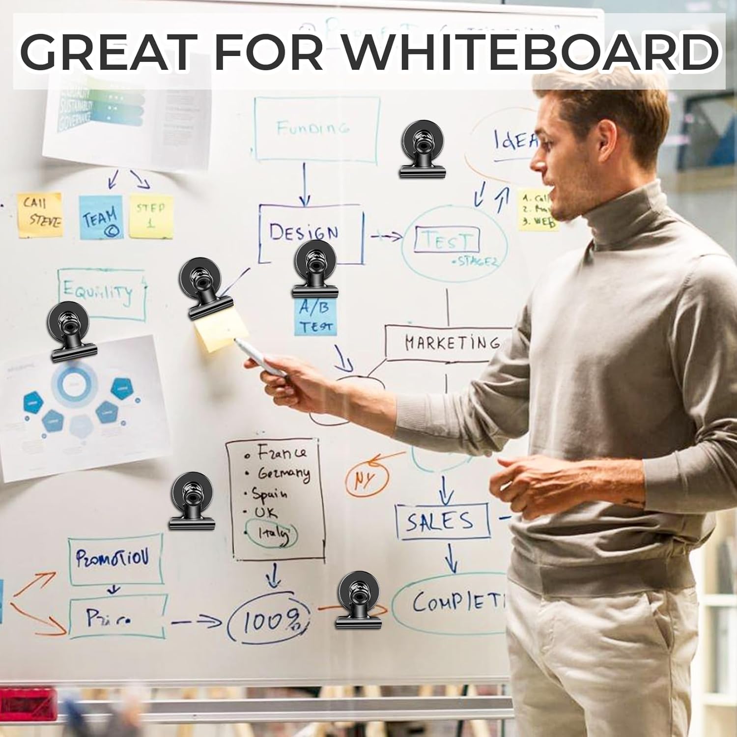 - Strong and Secure: Experience the power of heavy-duty magnetic clips. Safely hold over 25 sheets of A4 paper, preventing slips or falls on any metal surface.