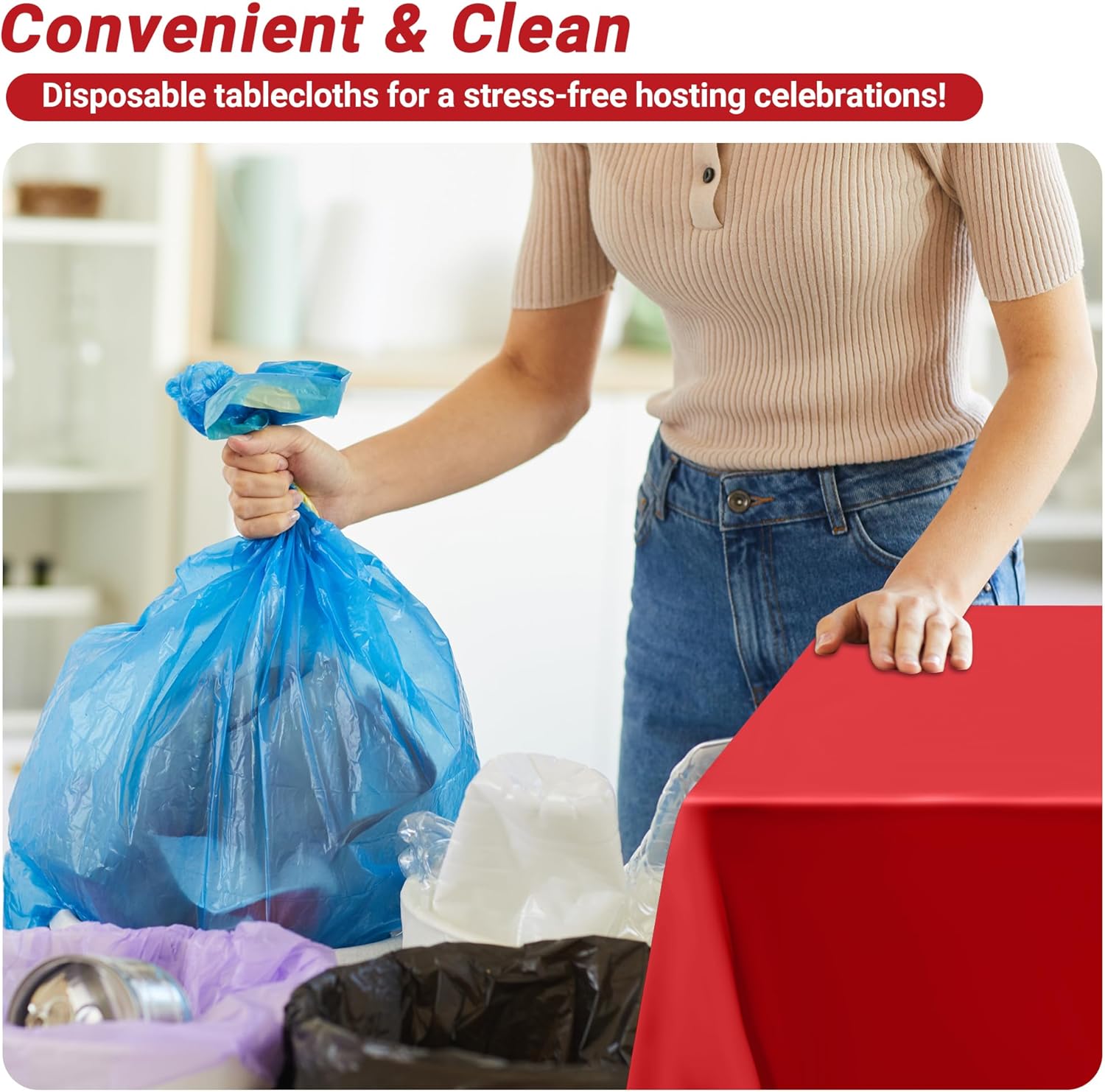 - Effortless Cleanup: The red table cloth rectangle table is perfect for catching spills from food, drinks or even paint during creative projects. Best of all, it's disposable, making cleanup a breeze!