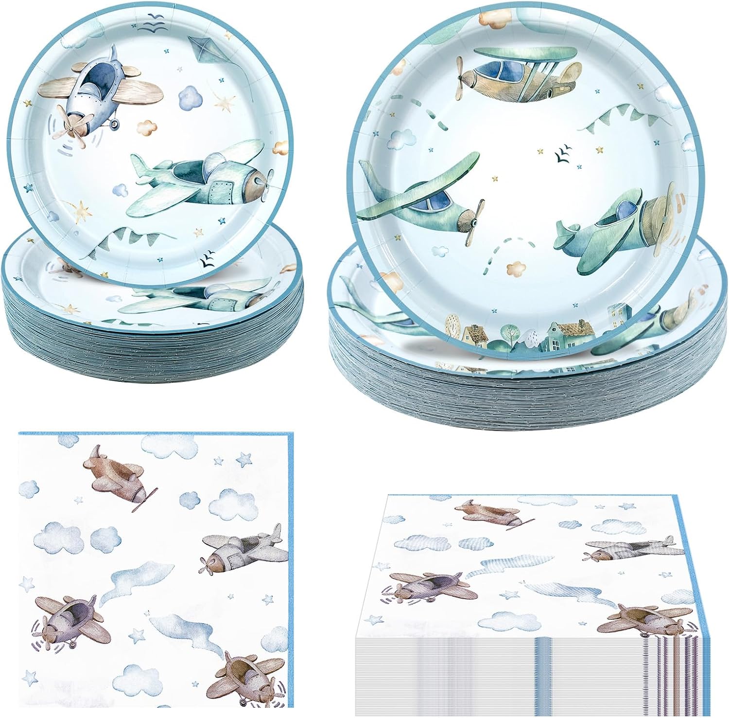 180Pcs Airplane Baby Shower Party Supplies Paper Plates and Napkins Serve 60 Disposable Tableware Set for Birthday Party Decorations Game Day Family School Holiday Sports Events