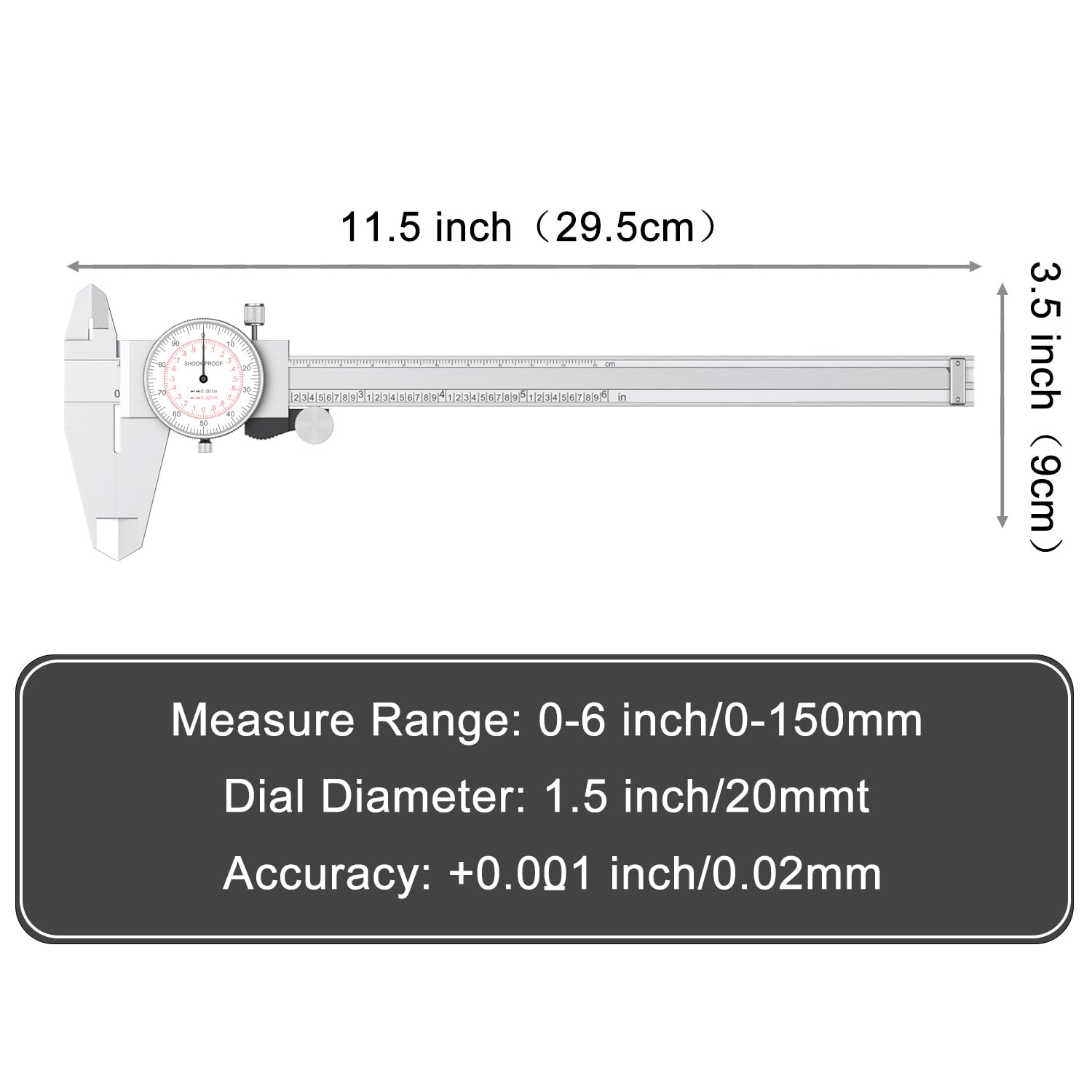 - Dual Reading Scale for Precision - The HDLNKAK Dial Caliper features a dual reading scale, allowing you to measure in both inches and millimeters (0-6"/150mm), ensuring versatility and accuracy for a wide range of applications.