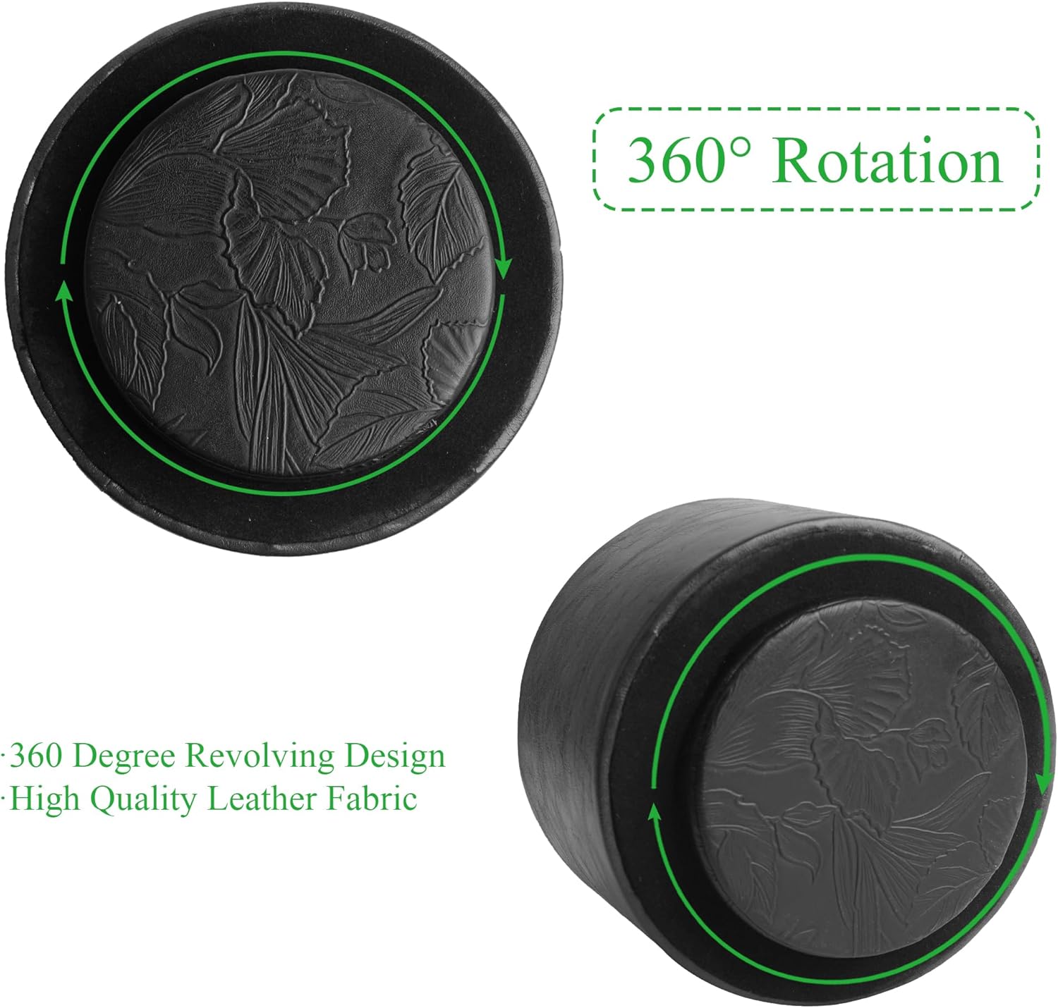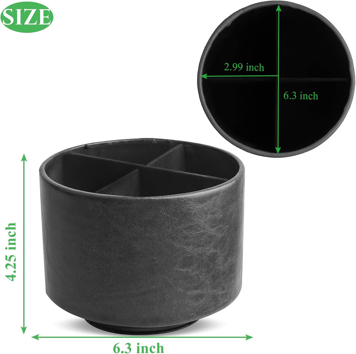 Hennaja Round Leather Art Supply Organizer,Remote Control Holder,360 Degree Spinning,Multi-Functional Pencil Holder,4 Compartments Desktop Stationary Organizer(1-Oil Black)