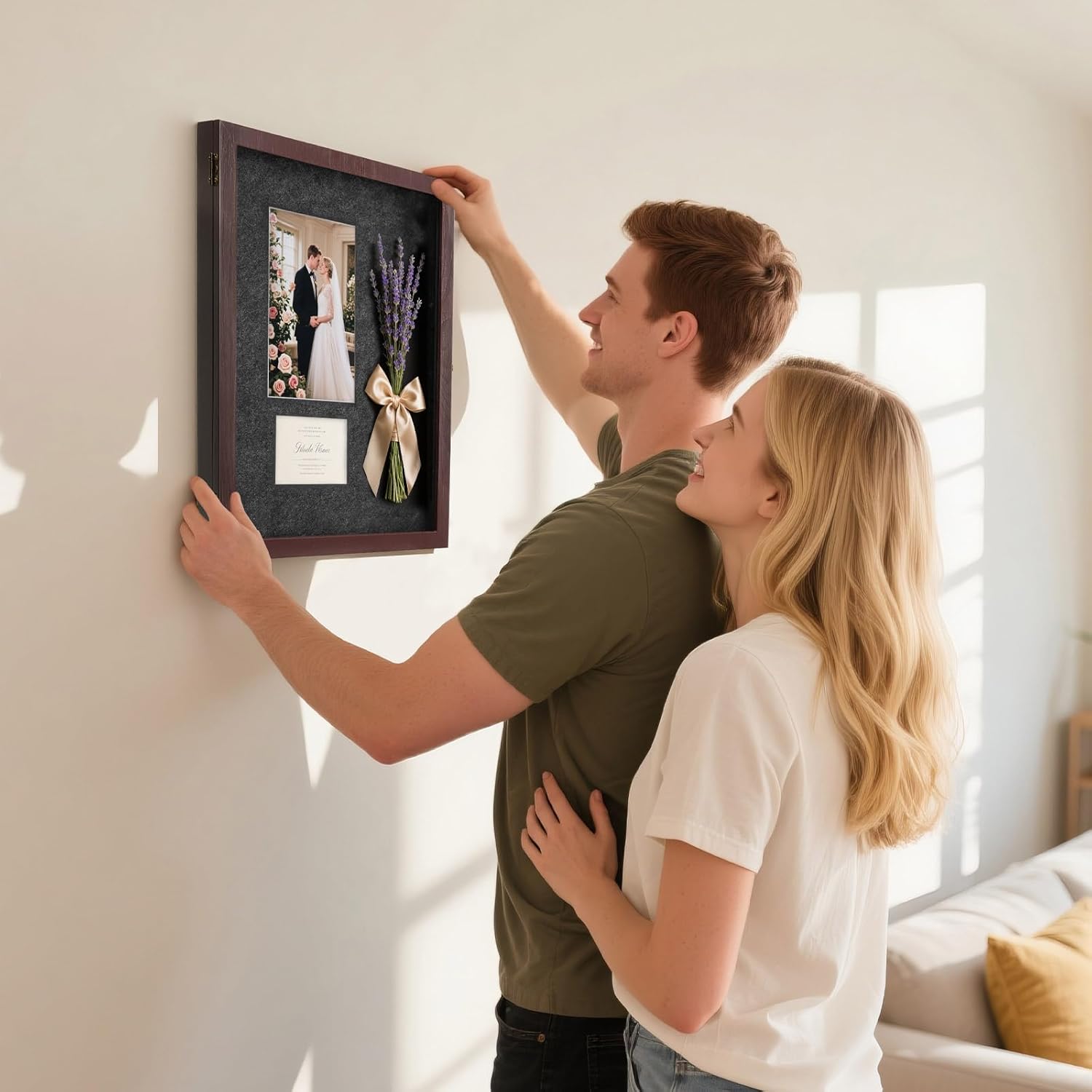 - 【Versatile Keepsake Showcase】Perfect for romantic milestones & home décor! Display wedding vows, dried bouquets, engraved rings, or personalized maps from honeymoons. Ideal as bridal shower gifts, anniversary presents, or couple's memory boxes. Showcases military coins, sports medals, poker chips. Great for wall/tabletop display in living rooms, bedrooms, or offices