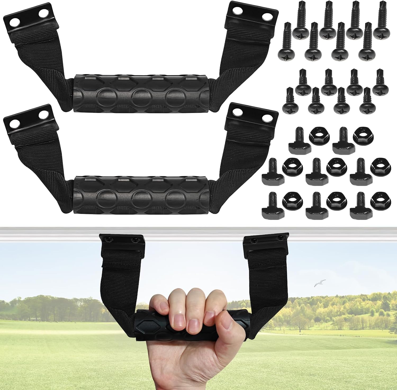 - PACKAGE INCLUDED - 2 pack golf cart grab handles and some screws.
