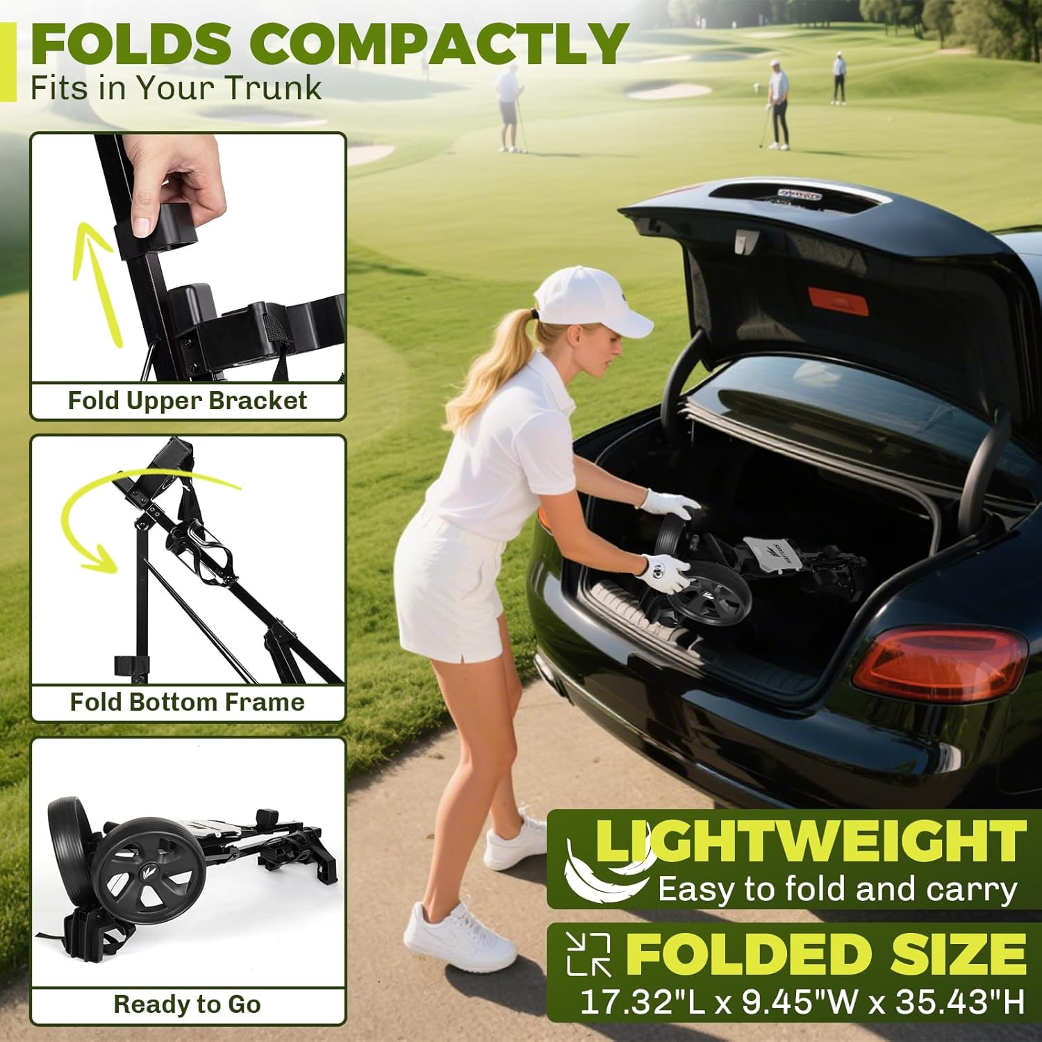 - ⛳【Stable & Smooth on the Course】 This 2-wheel golf cart offers smooth rolling and stable support, making it ideal for walking players on fairways and rough terrain alike.