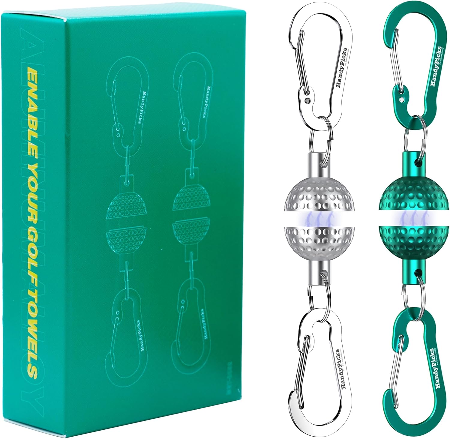 Handy Picks Magnetic Clip for Golf Towels, Original Mini Golf Ball Design, Industrial Neodymium Magnet for Strong Hold to Cart or Clubs, Essential Golf Accessory for Golf Lovers