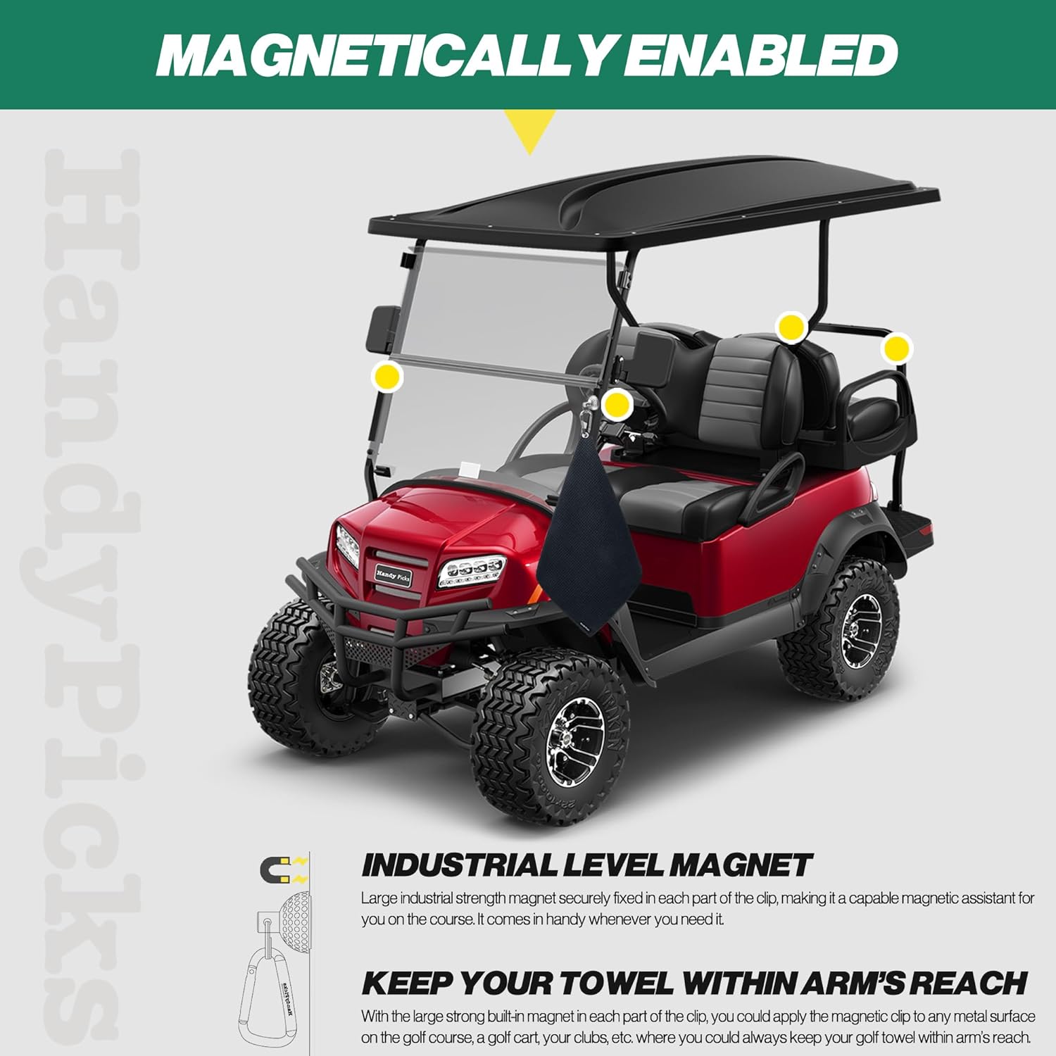Handy Picks Magnetic Clip for Golf Towels, Original Mini Golf Ball Design, Industrial Neodymium Magnet for Strong Hold to Cart or Clubs, Essential Golf Accessory for Golf Lovers