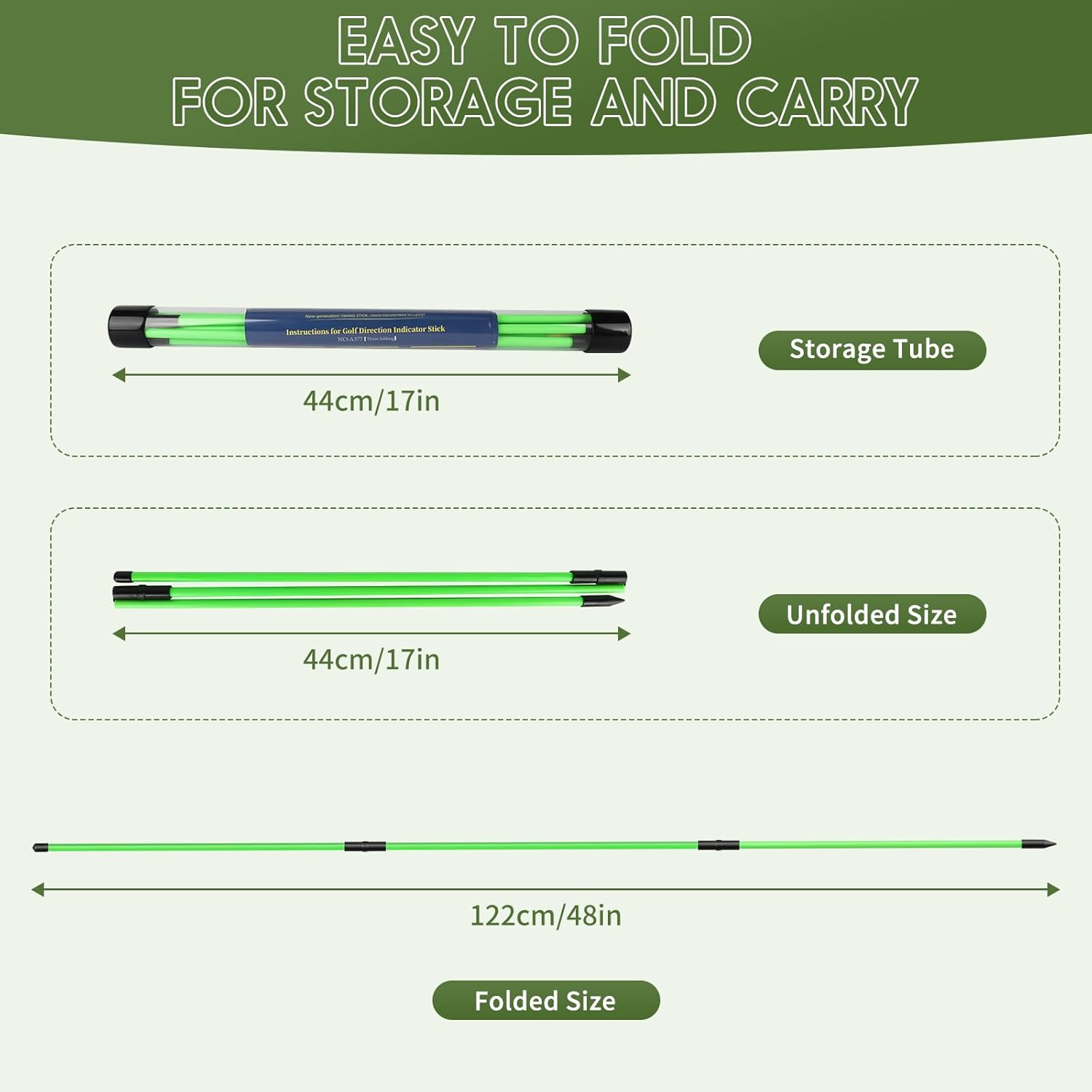 - Collapsible Golf Alignment Sticks: Foldable into three sections for easy storage in the included tube.