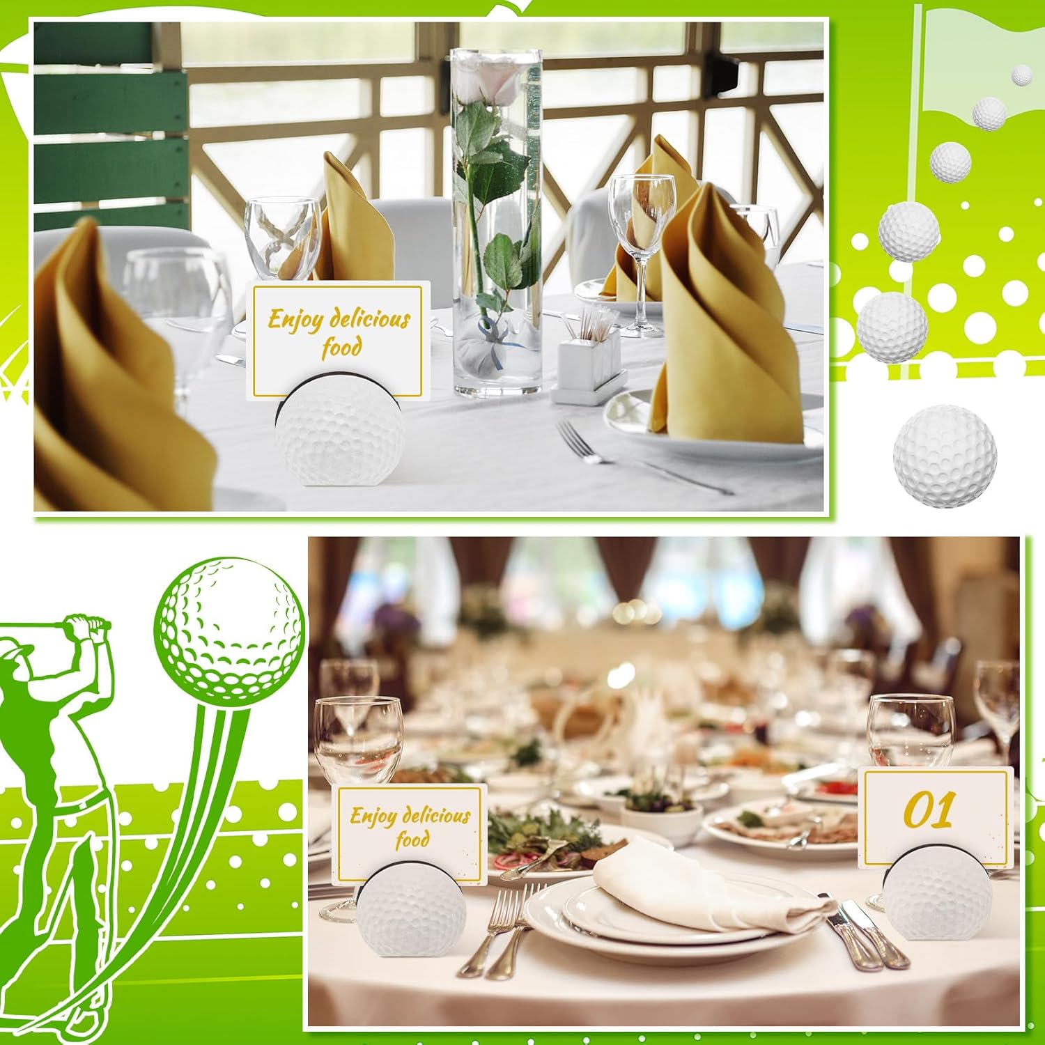 - Golf Centerpieces Place Card Holder Bulk: you will receive 24 golf ball shaped base place card holders to meet all your event needs; Whether you are hosting a Masters themed party or a golf gender reveal party, these golf themed party decorations serve as ideal picture holders and photo holders for centerpieces, perfect for table place card holders