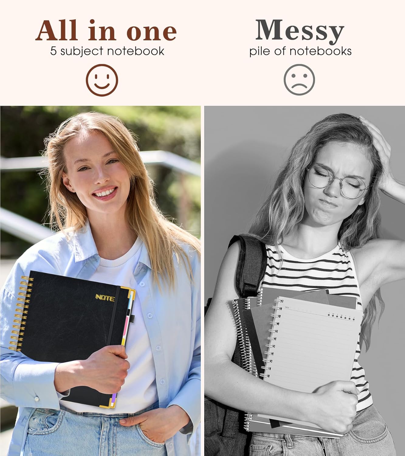 - 【Stylish and Professional】 This multi subject notebook is a visual treat, combining soft hues and elegant fonts to creates an inviting and cheerful look. Very stylish amidst plain spiral journal,and offers a slight touch of pretty for your desk. Whether you’re using it for work, school, or a gift choice for professionals and students, it’s a great investment. Highly recommend it to anyone in need of a high-quality, versatile notebook!
