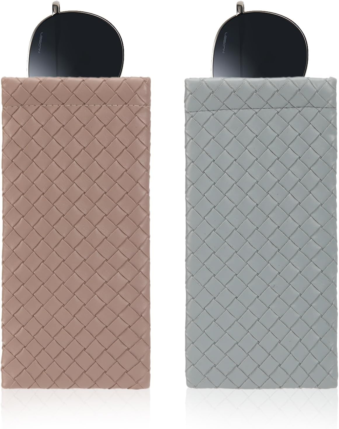 - CLASSIC WOVEN LATTICE APPEARANCE: The soft eyeglass cases for women perfectly combines fashion, simplicity, durability, convenience and other performances. The creative woven lattice appearance makes the sunglasses pouch simple but not monotonous. No matter what the occasion, the squeeze top glasses bag can be your perfect accessory and make you stand out.