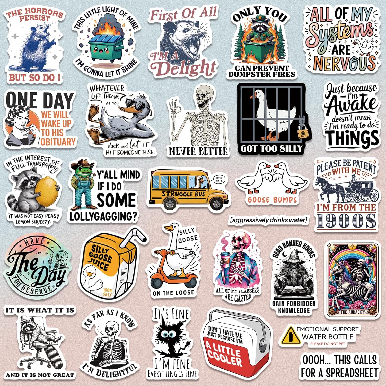 - Funny Stickers for Adults: This sticker pack contains 200 unique designs, perfect for adults who enjoy quirky sayings, silly animals, sarcastic jokes, and everyday chaos. A fun and relatable way to express your vibe