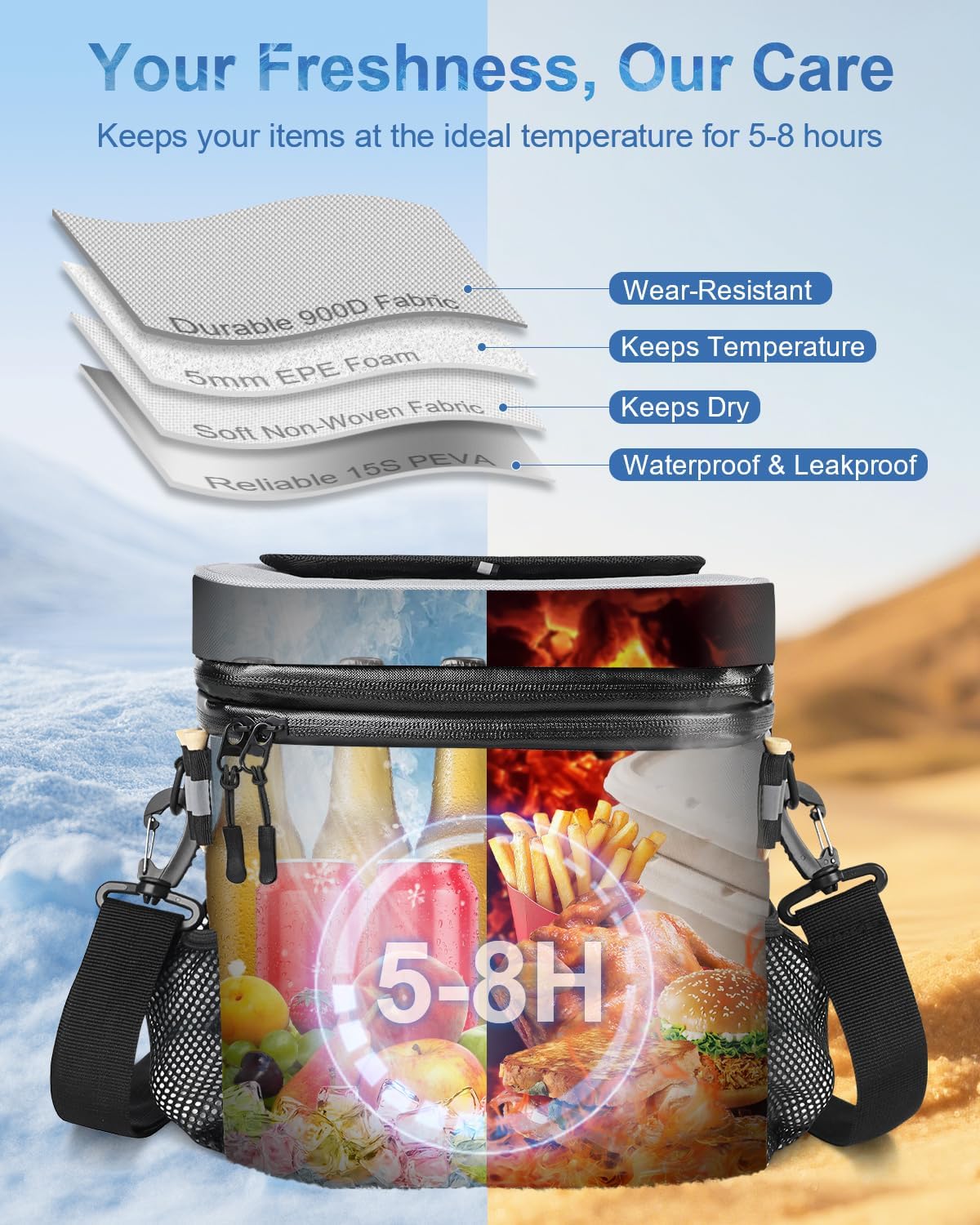 - Expand As You Go: Never cut adventures short! Your cooler bag instantly unlocks 21.3% extra space for drinks, snacks, or fruits. Ideal for surprise beach hangs, bonus holes, or spontaneous picnics – room for more memories