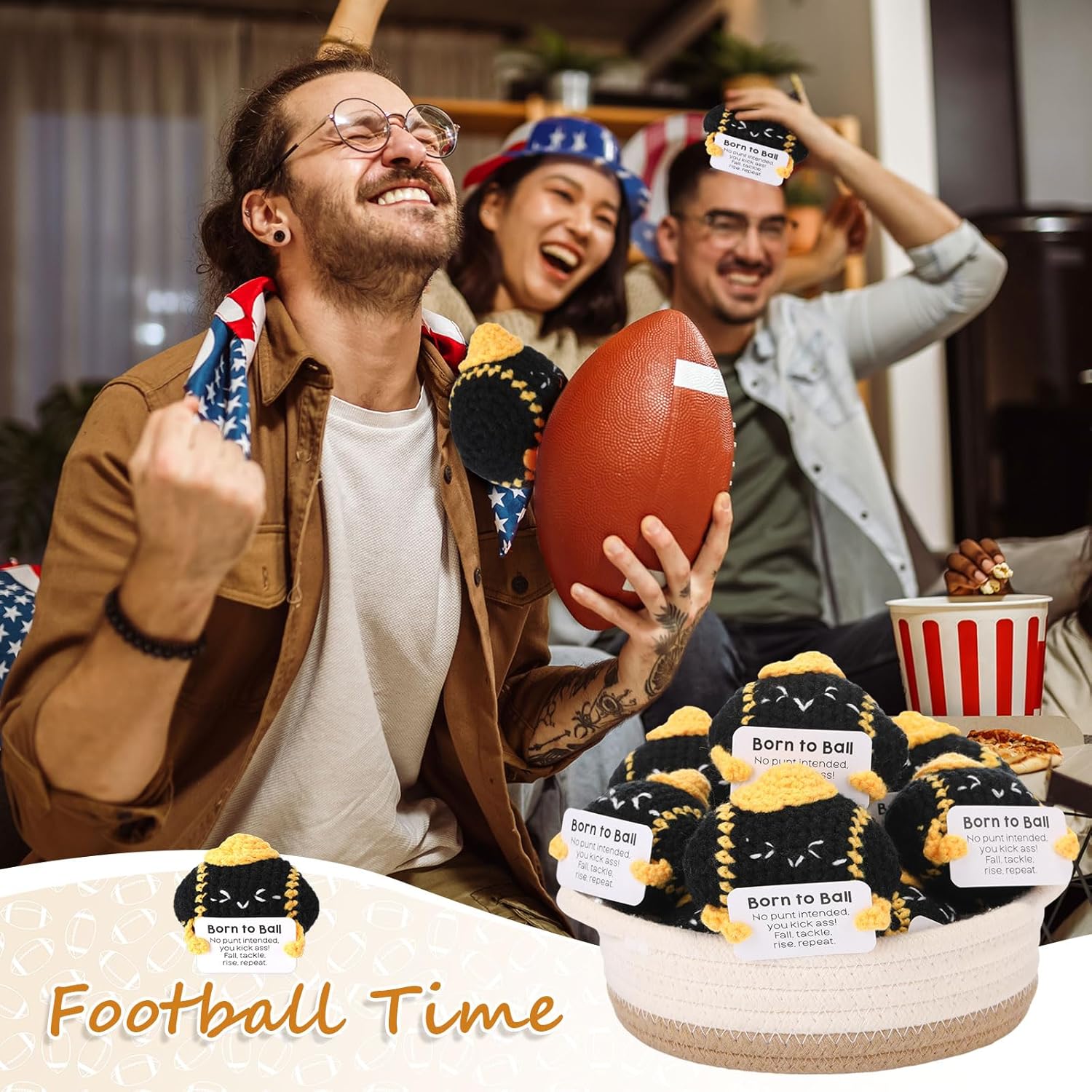 - Bulk Crochet Football Gift Set: this football gifts set includes 12 adorable crochet footballs with positive support cards, suitable as football party favors or appreciation gifts; Each crochet football is handmade with soft yarn, durable and lightweight, which ideal for birthday parties, sports team events, holiday celebrations, or as a thoughtful bulk gift for football fans and sports lovers