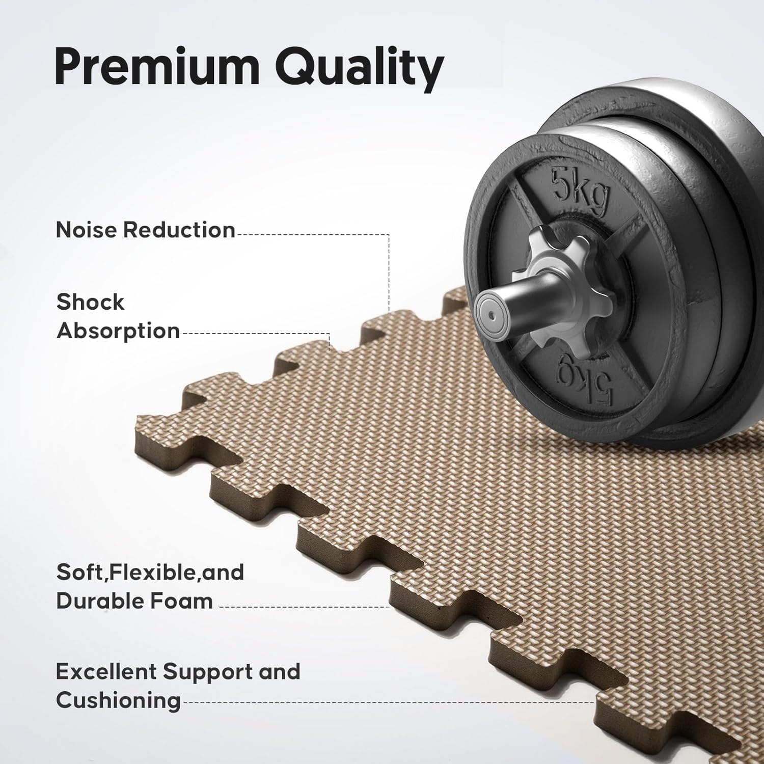 Home Gym Mat, Puzzle Exercise Mat, EVA Interlocking Foam Floor Tiles for Home Workout Equipment and Kids' Play Areas - Blue, 24 in x 24 in x ½ in - (Brown, 16 Pack(64 SQ FT))