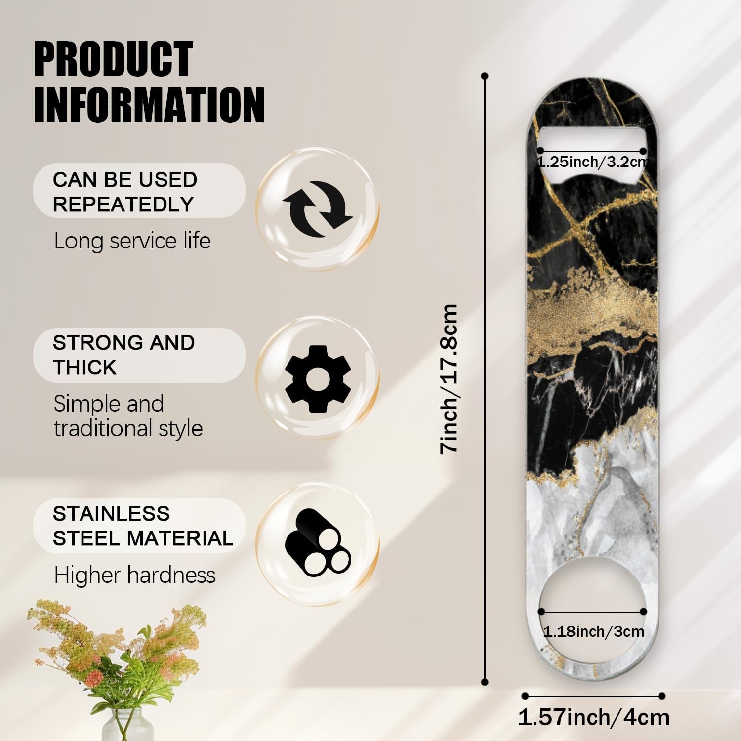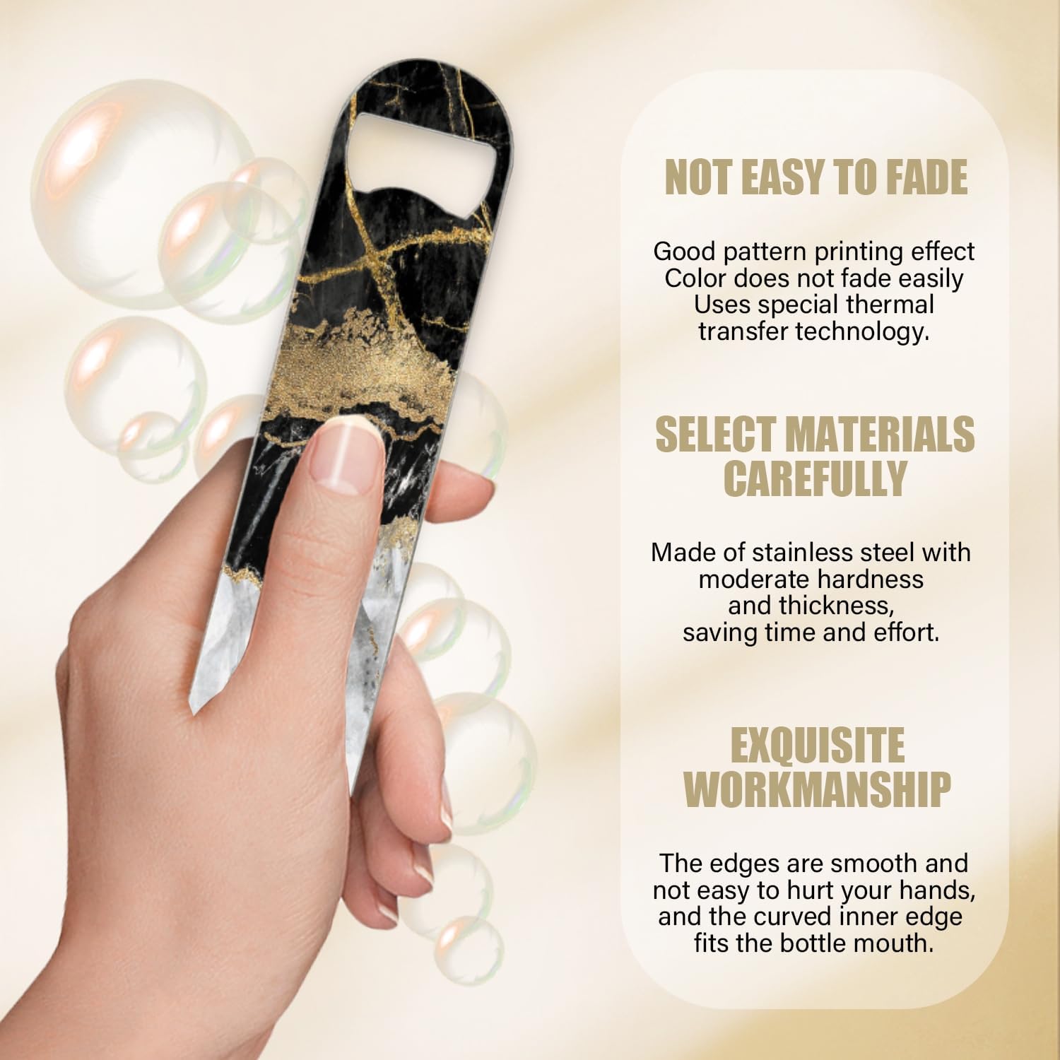 2 PACK Beer Bottle Opener, Stainless Steel Flat Bottle Openers,7 inch Metal Decor,Black And Golden Marble
