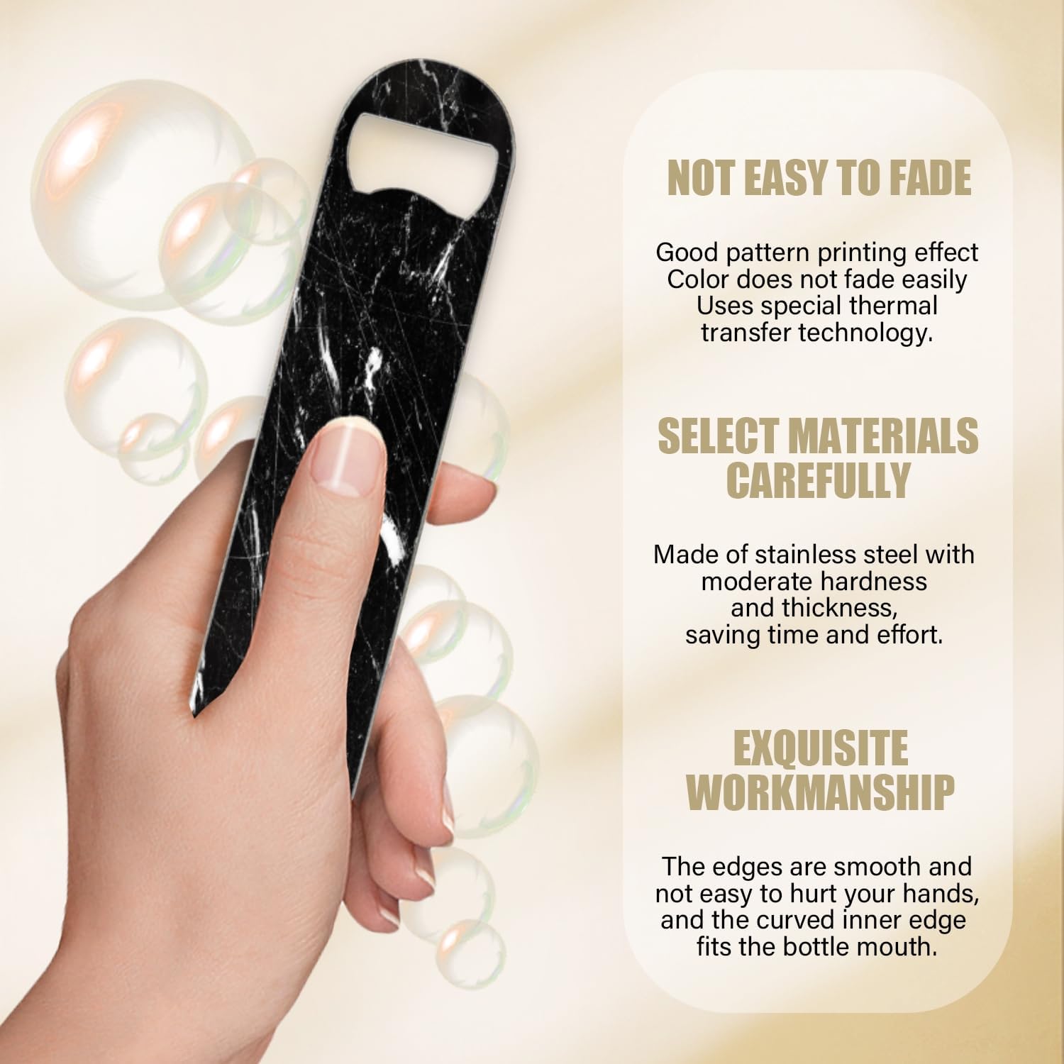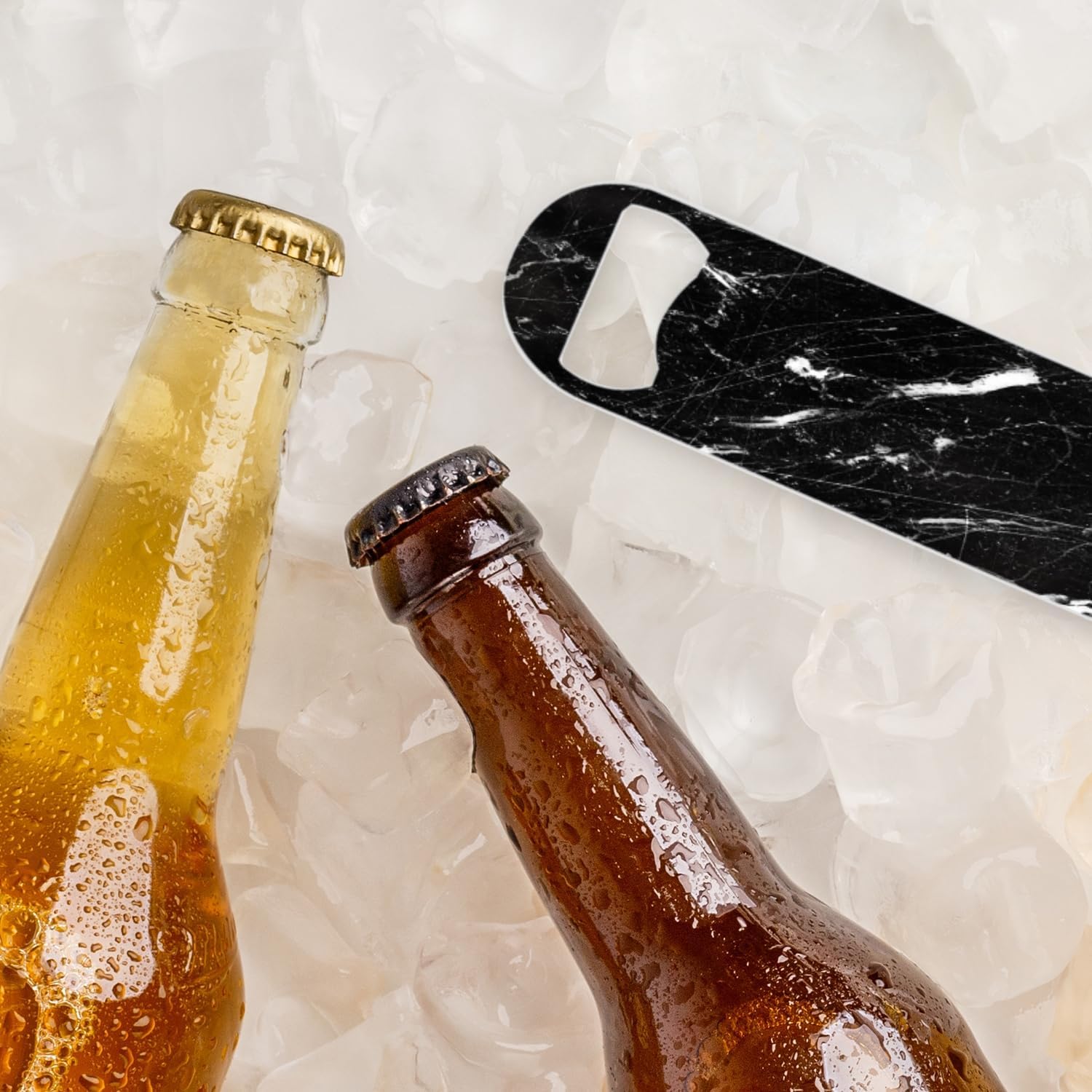 2 PACK Beer Bottle Opener, Stainless Steel Flat Bottle Openers,7 inch Metal Decor,Black Marble
