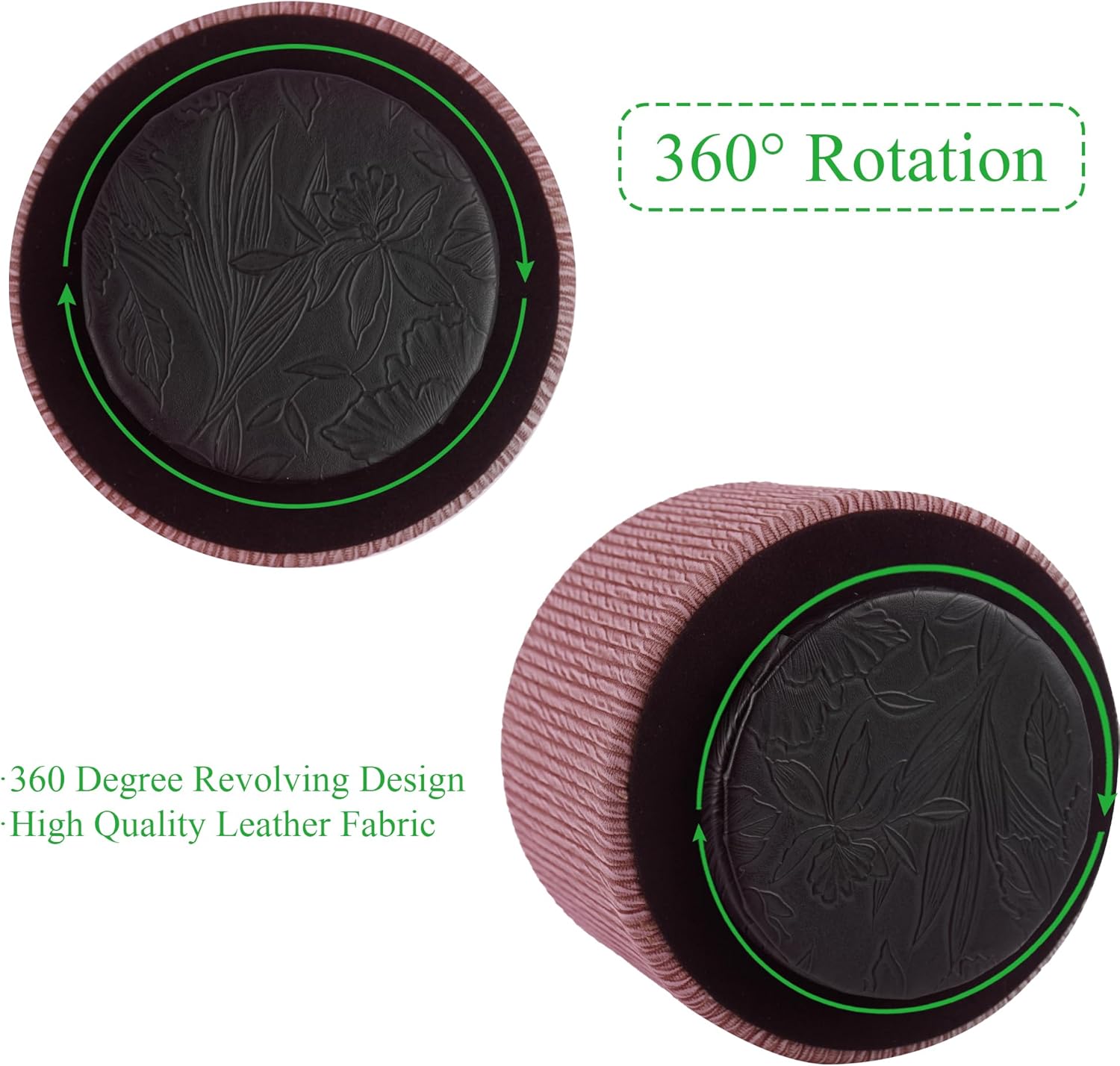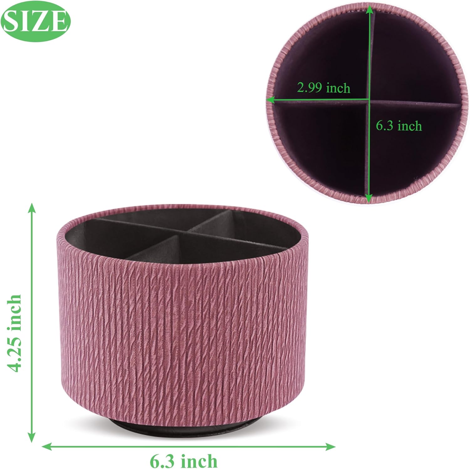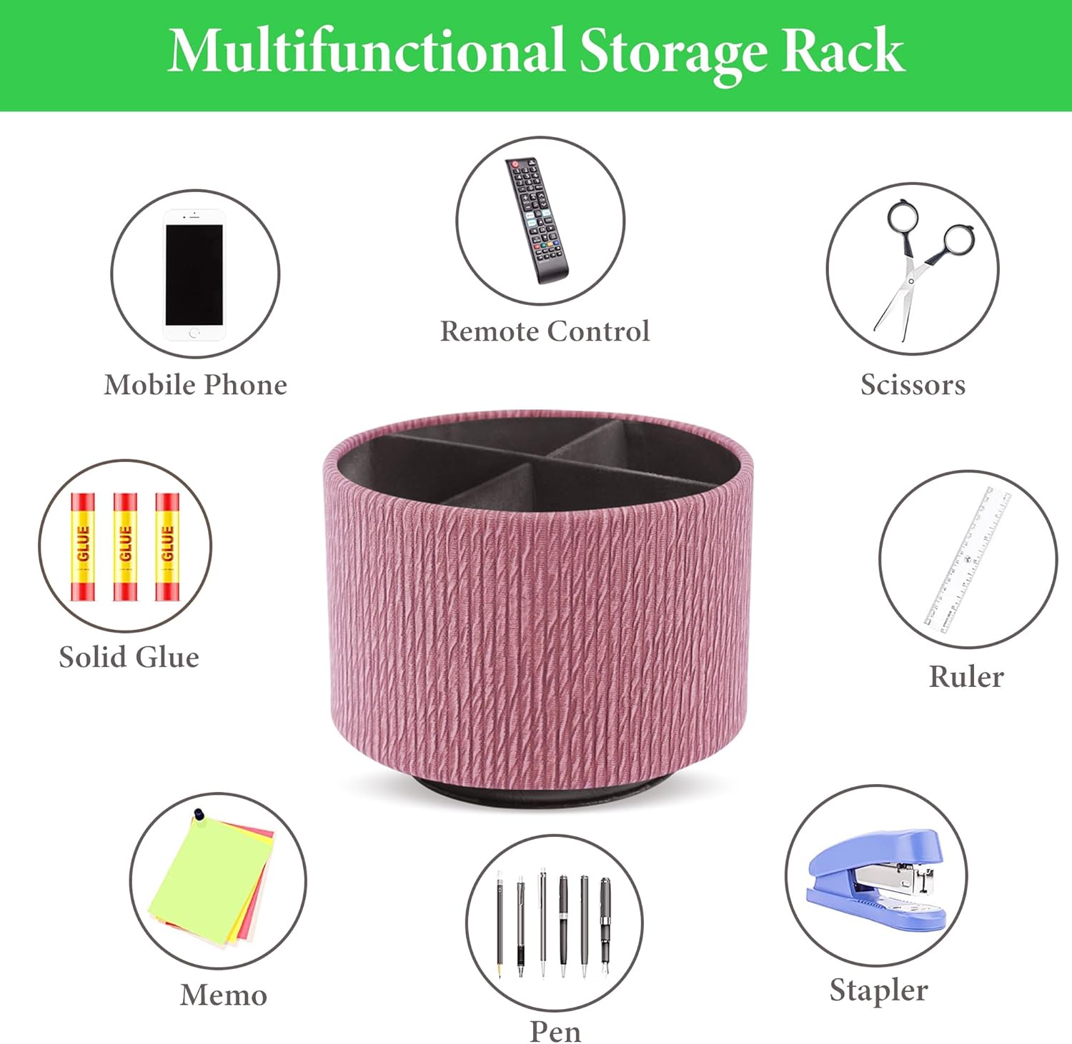 Hennaja Round Leather Art Supply Organizer,Remote Control Holder,360 Degree Spinning,Multi-Functional Pencil Holder,4 Compartments Desktop Stationary Organizer(1-Wood Pink)