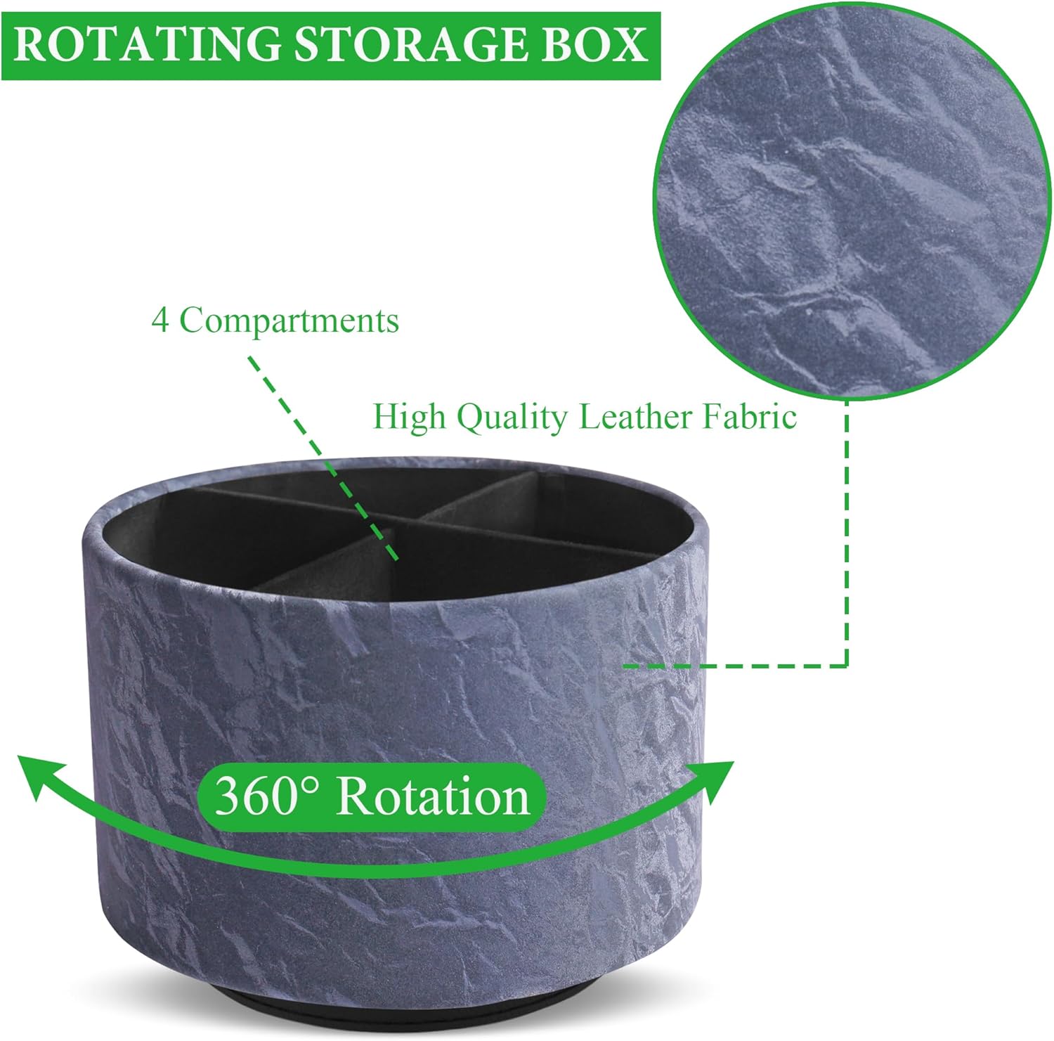 Hennaja Round Leather Art Supply Organizer,Remote Control Holder,360 Degree Spinning,Multi-Functional Pencil Holder,4 Compartments Desktop Stationary Organizer(1-Hill Blue)