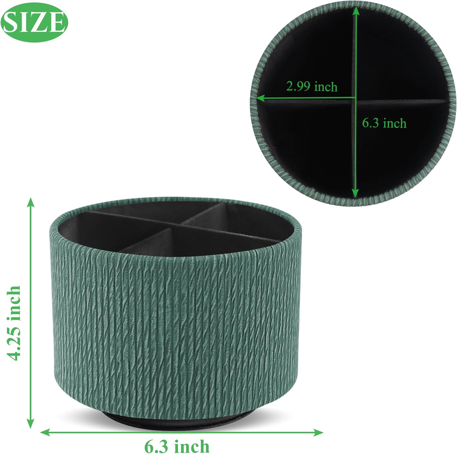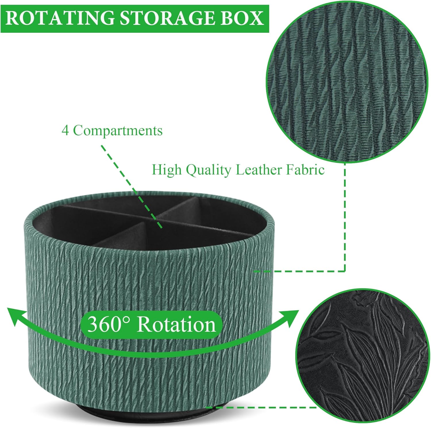 Hennaja Round Leather Art Supply Organizer,Remote Control Holder,360 Degree Spinning,Multi-Functional Pencil Holder,4 Compartments Desktop Stationary Organizer(1-Wood Green)