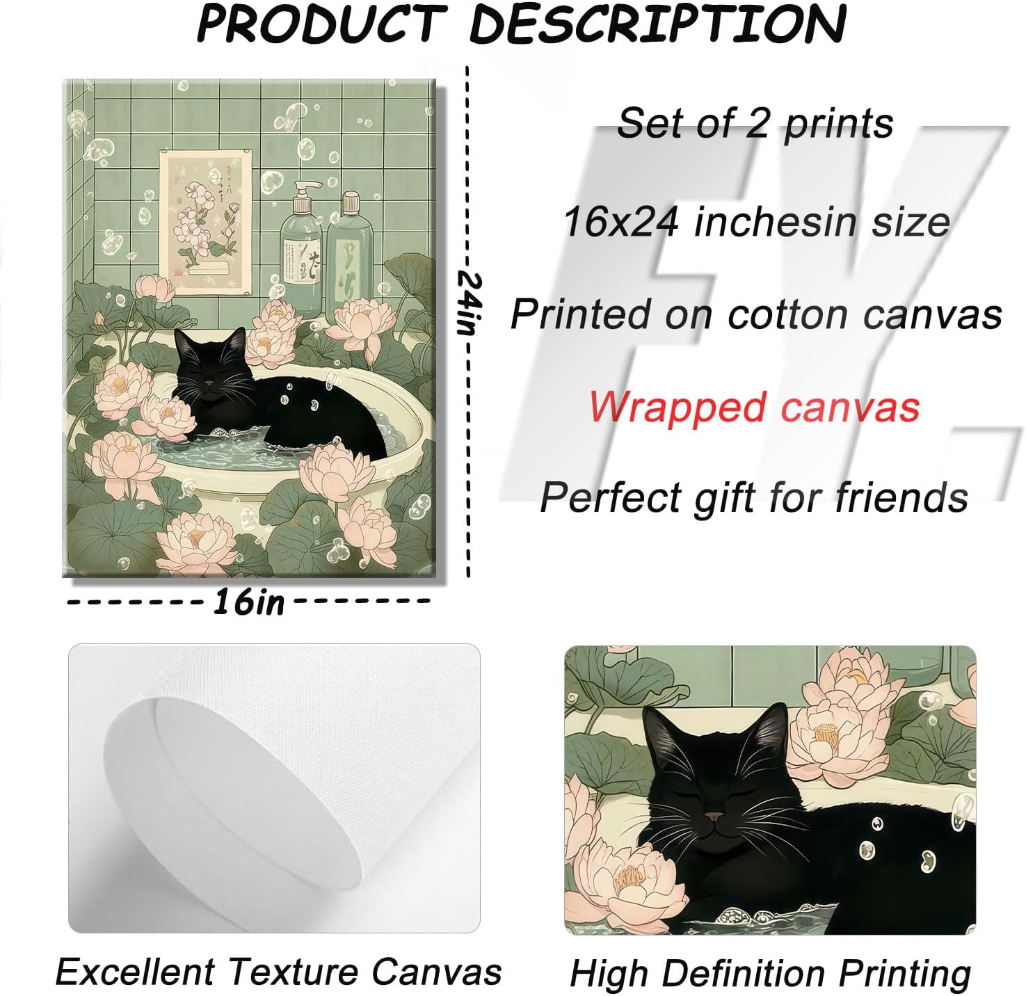 - 【Japanese Cat Bathroom Wall Art】Our canvas prints come in versatile sizes (e.g., 12x16 inches, 16x24 inches) to complement any home room. The framed option features artworks stretched on sturdy wooden frames. With pre - attached hooks and accessories, they're ready to hang out of the box