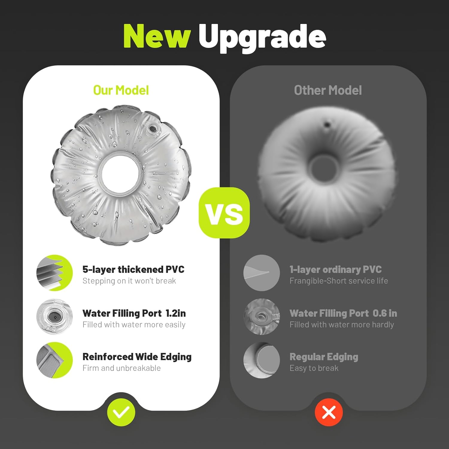 - Notes: Do not throw water bags from heights. Instant impacton water generates strong explosive force, which mayrupture the bags, the water weight bag does not include the stand