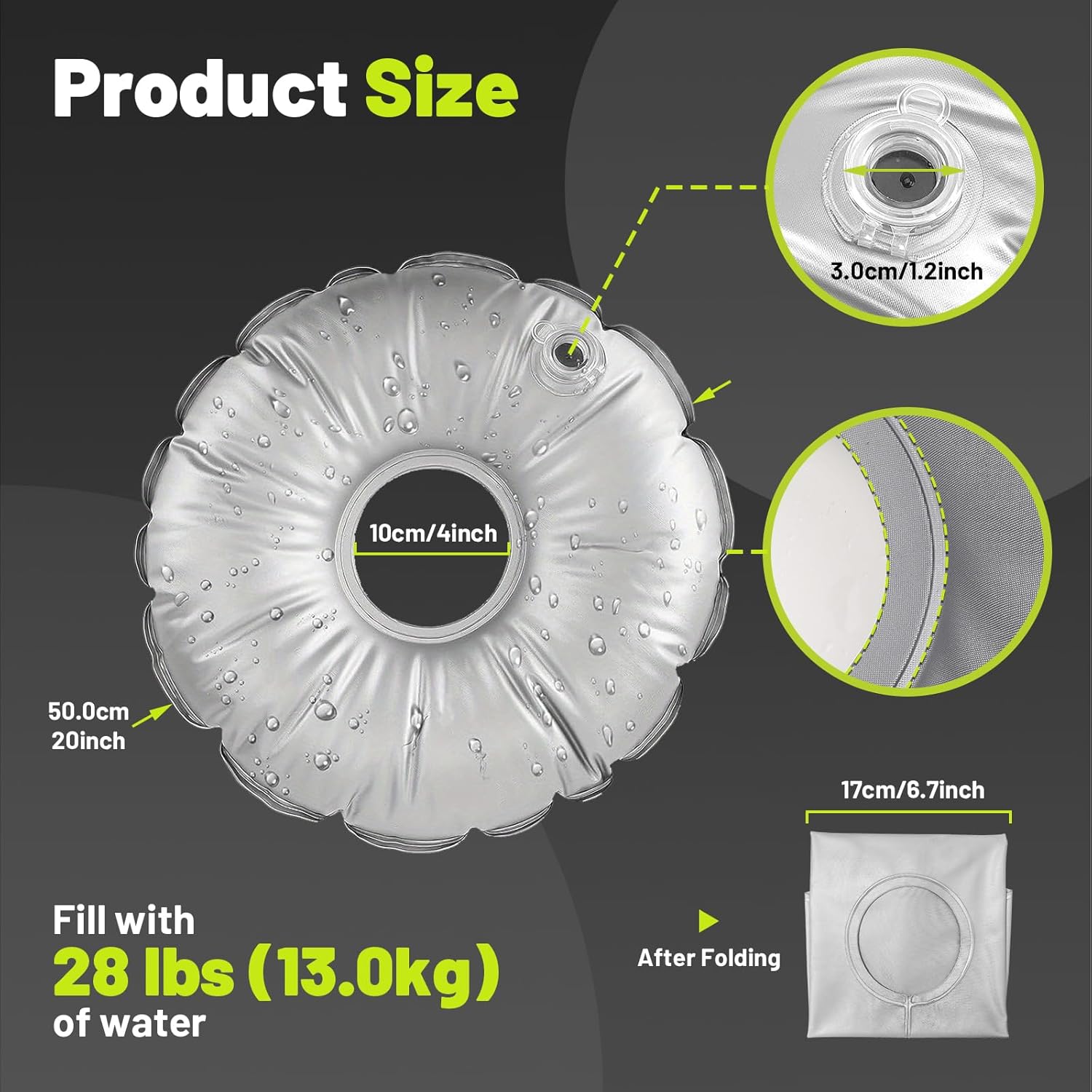 - Space-Saving For Storage: The water bags for weight can be folded, easy to fold and store when not in use, you can also fold the beach umbrella water bag into a small piece, convenient for you to carry