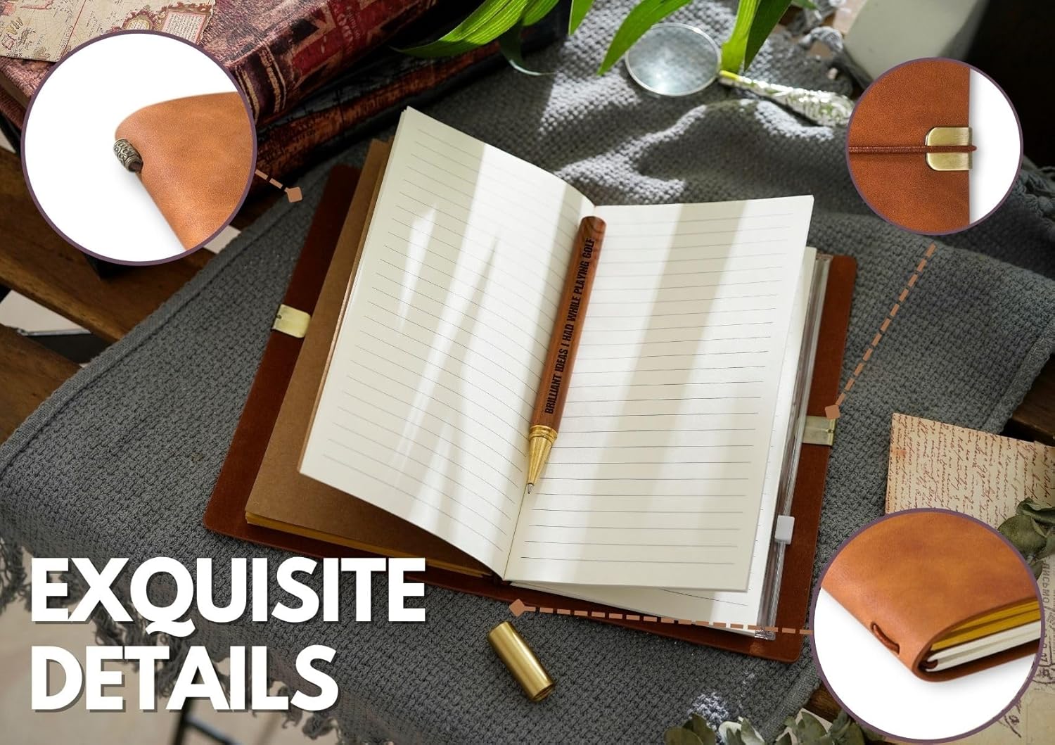 - Unique Design - Unique appearance, soft texture, easy to carry around. This journal book is suitable for home, office, outdoor adventure, and travel, etc. A durable classic leather cover ensures well protection. In addition, it comes with a strap to ensure that the paper and accessories will not be scattered.