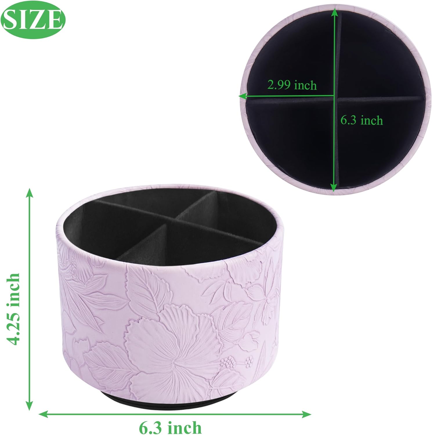 Hennaja Round Leather Art Supply Organizer,Remote Control Holder,360 Degree Spinning,Multi-Functional Pencil Holder,4 Compartments Desktop Stationary Organizer(1-Carved Purple)