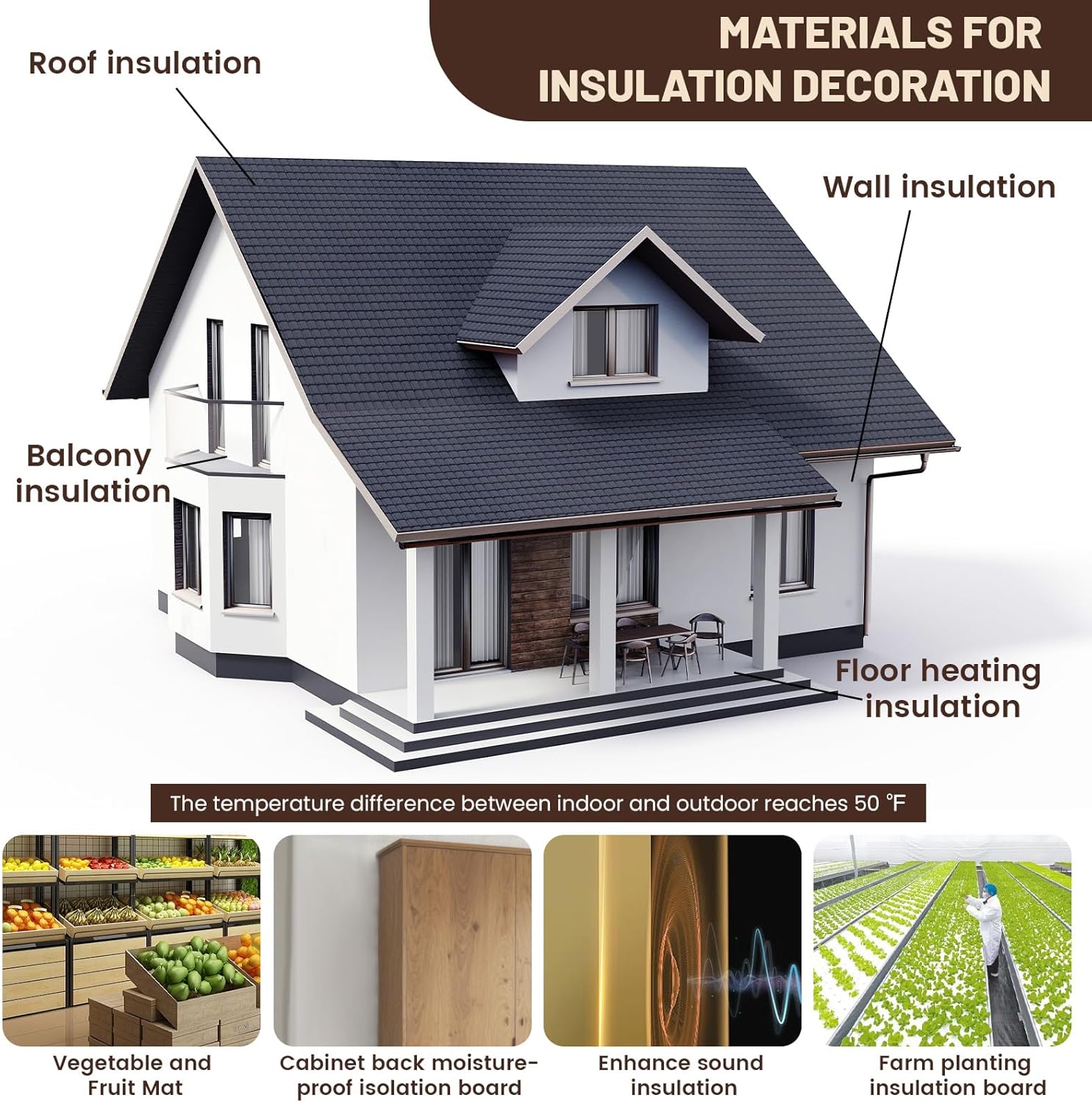 - The foam board is waterproof closed cell foam, which has superior 034 level thermal insulation performance and can reduce certain noise effect, and is very suitable for wall insulation and sound insulation, floor heating and attic. It can also be used as a moisture-proof backboard, leveling and height increasing, and for plant cultivation. You may also use it to make outdoor cabins and provide warm shelter for cute animals