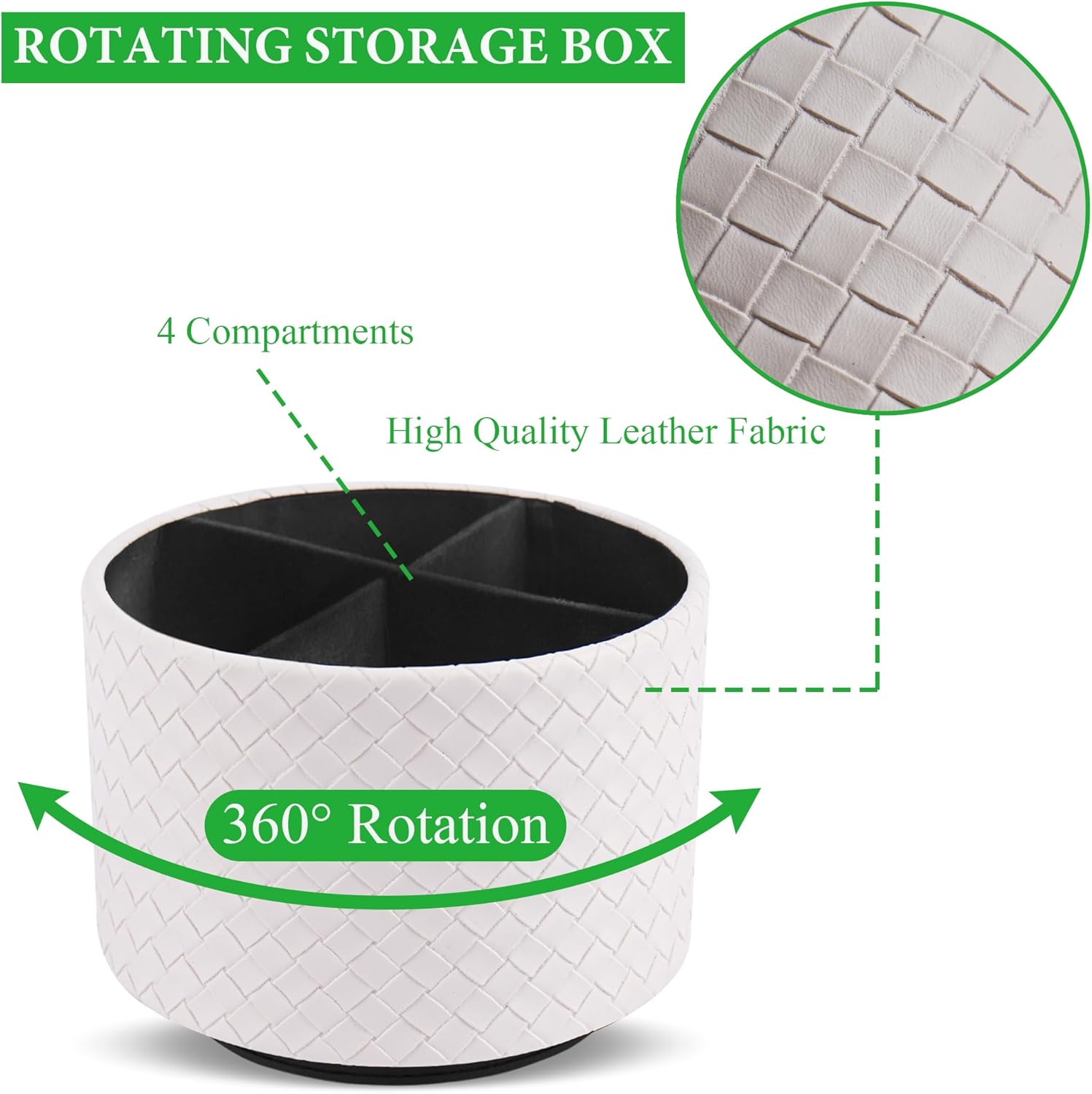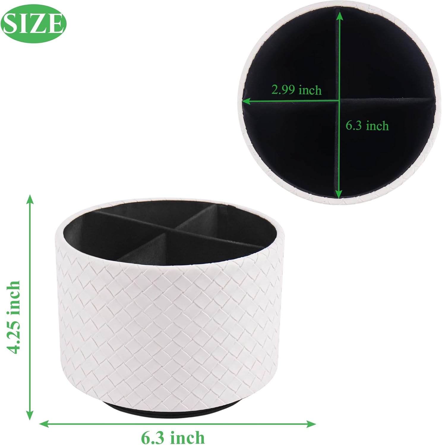 Hennaja Round Leather Art Supply Organizer,Remote Control Holder,360 Degree Spinning,Multi-Functional Pencil Holder,4 Compartments Desktop Stationary Organizer(1-Weave White)