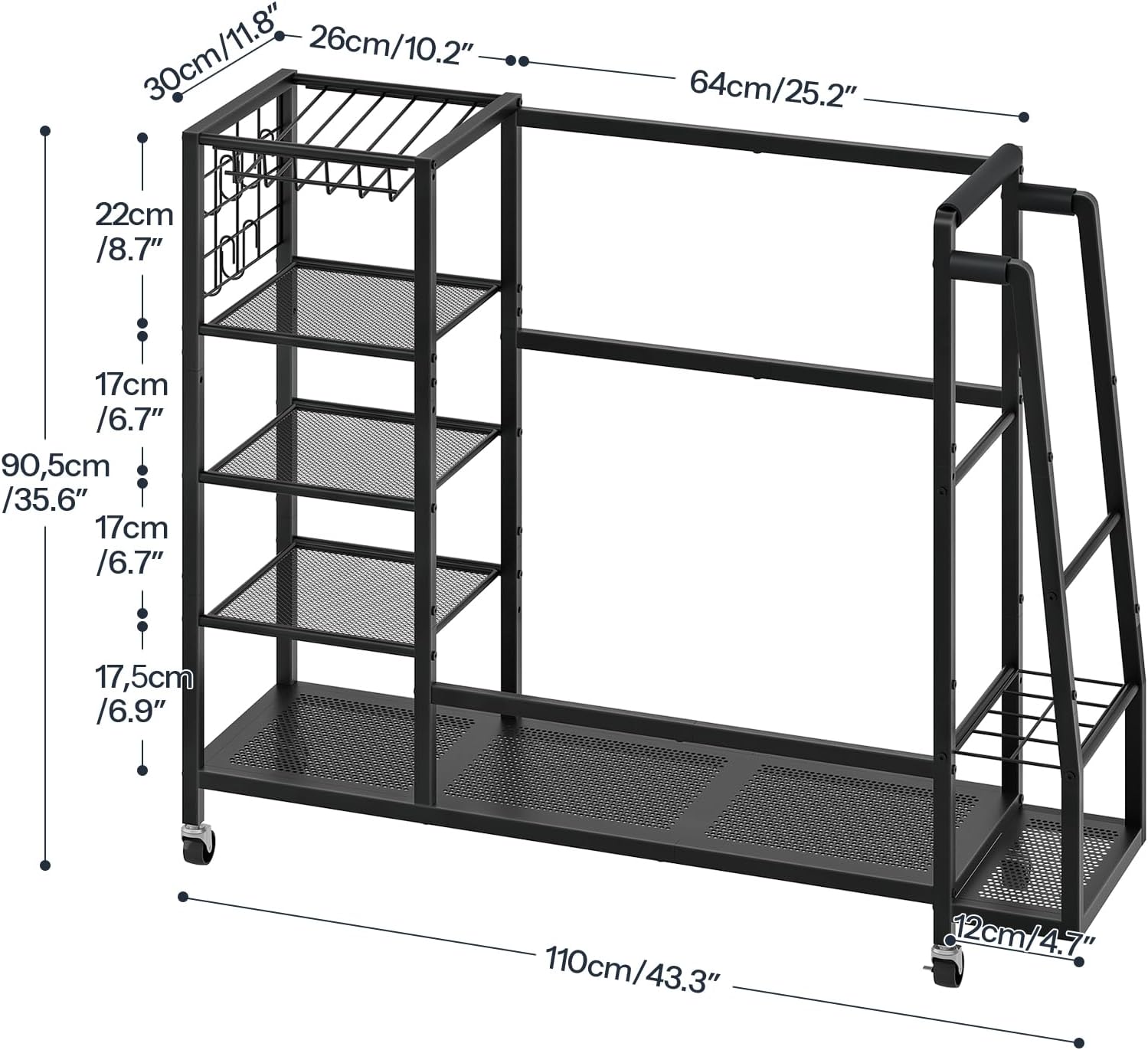 - Mobile Casters: Equipped with 4 industrial-grade swivel wheels, including 2 with brake locking features, this golf storage stand is easy to move around your garage, golf club, or basement. Enjoy smooth mobility and secure stability when locked