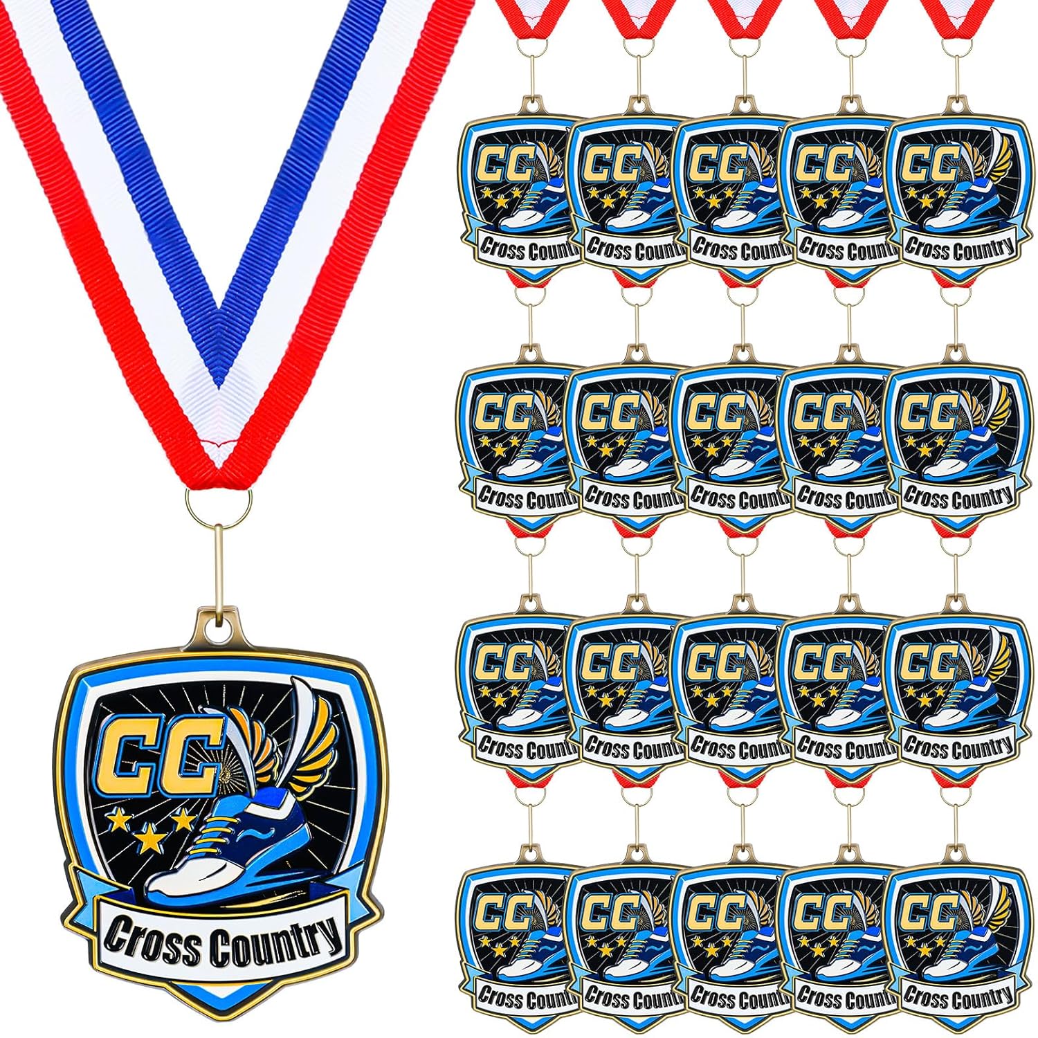 - Adequate Number Bulk: our sufficient package has 20 pcs cross country awards medals with mixed red, white and blue neck straps, these shield shape medals are suitable for you to honor multiple individuals and teams. These cross country medals bulk are ideal to serve as party favors