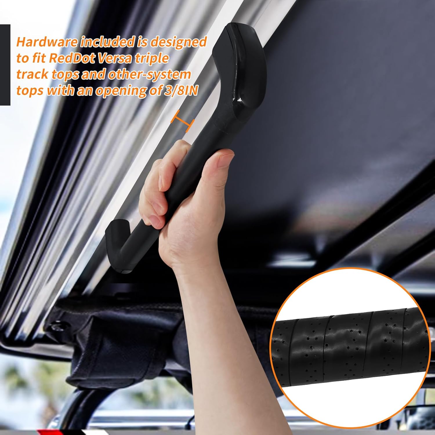 - PREMIUM QUALITY - Grab handle is made of industrial grade aluminum alloy, which will not rust. More sturdy and durable. In order to make the handle higher, the mounts part are made of industrial grade ABS plastic for more comfortable grip. Suitable for any harsh outdoor environment. Will not become weak under UV light for a long time.