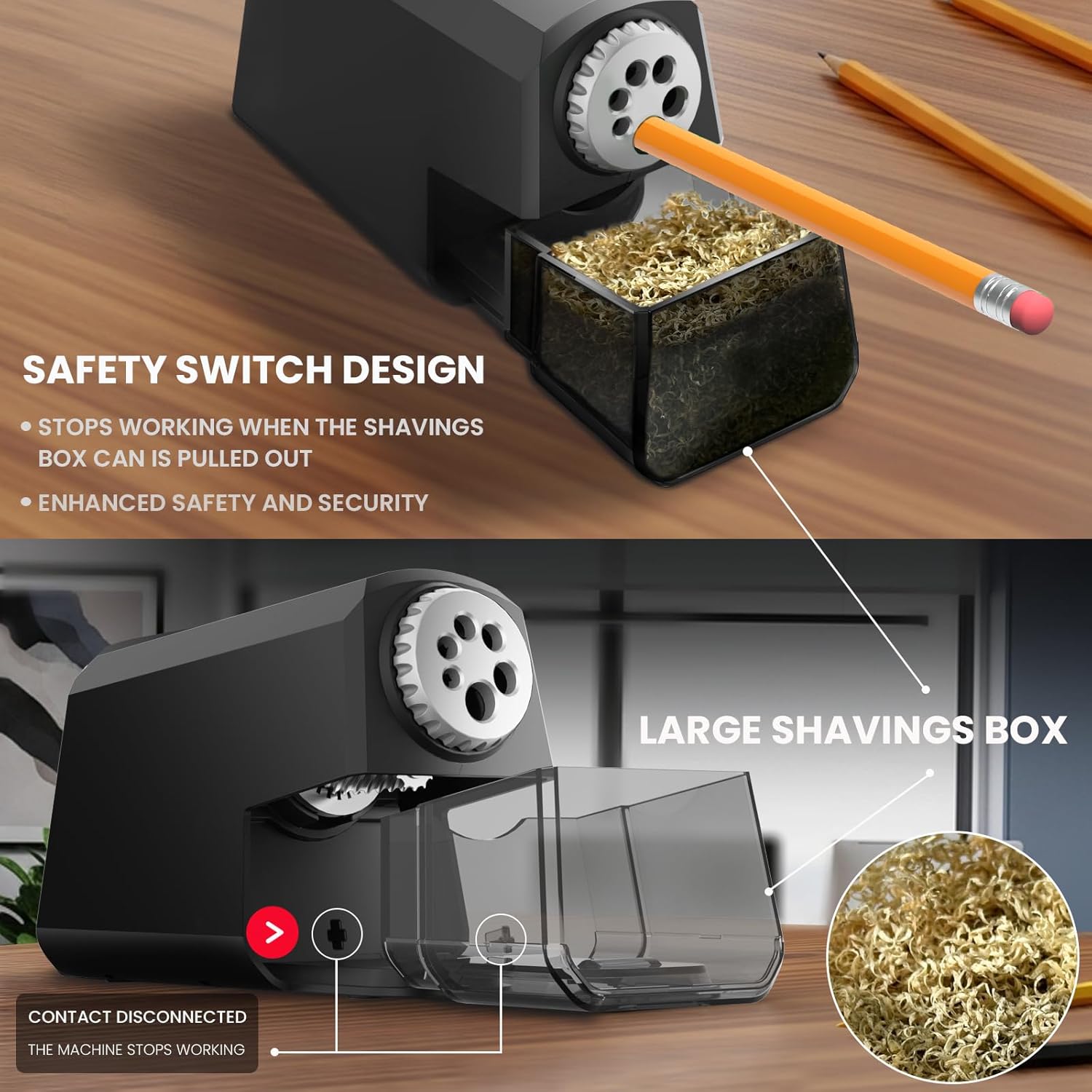 - Fast 4-Second Sharpening: Sharpens pencils in just 4 seconds with a high-efficiency motor and zinc alloy cutter