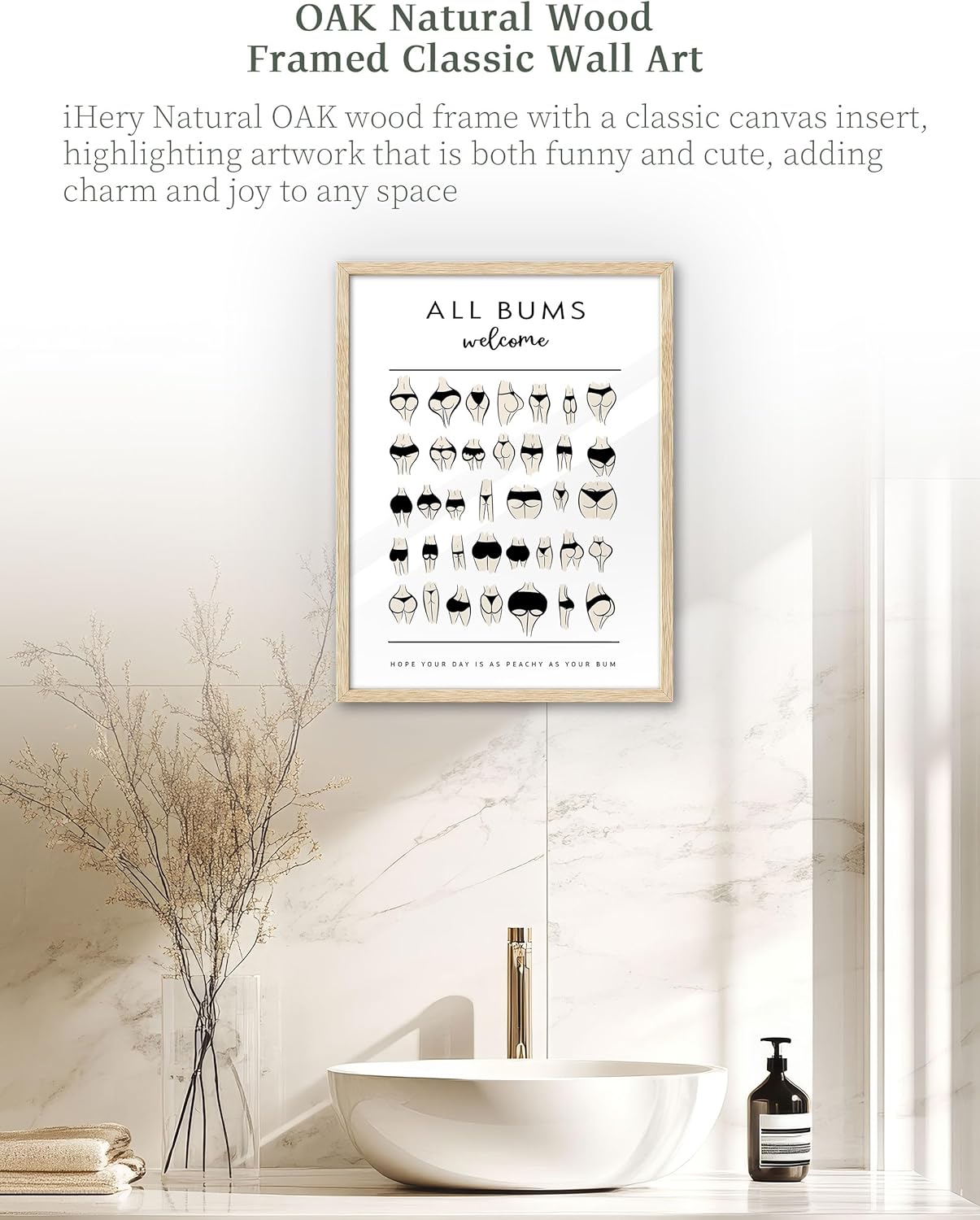 iHery Natural OAK Walnut Color Wood Nice Bum Framed Wall Art, 12x16in All Bums Are Welcome Nice Butt Bathroom Wall Art, Canvas Funny Bathroom Sign Wall Decor For Toilet Set of 1 Gift